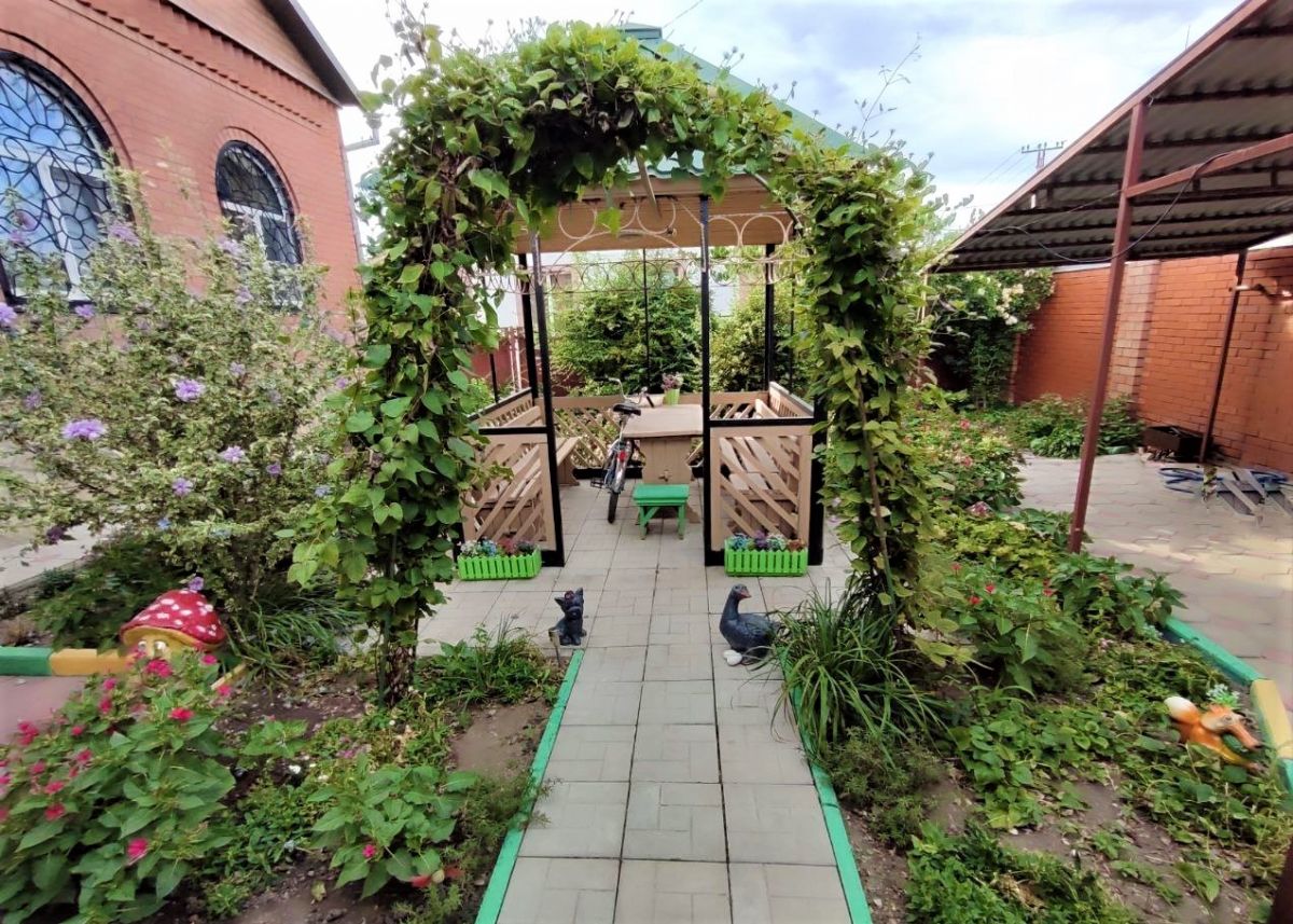 Дом с 173,8 кв.м. площадь первого этажа (без учета площади подвала 140 кв.м.), находится на 5,5 сотках земли. Участок угловой, ухоженный и цветущий. Есть парковочное место под навесом для двух и более авто и гараж для одного автомобиля. Двор в плитке, есть беседка перед домом окруженная различными цветущими кустарниками и розами. Забор кирпичный, ворота и калитка металлические.