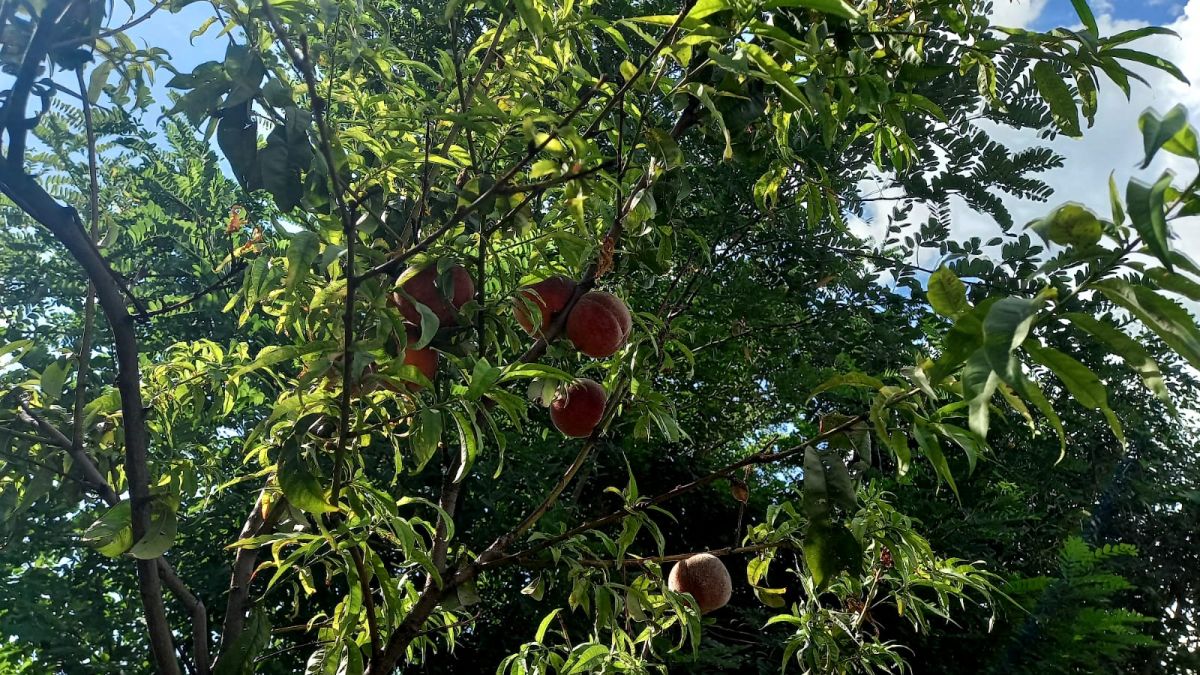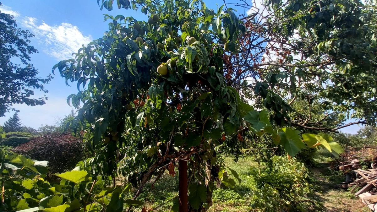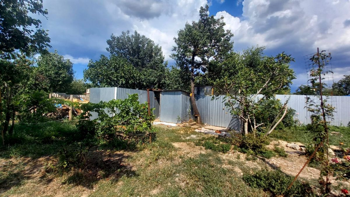 На участке высажены плодовые деревья. Хозяйственный блок.