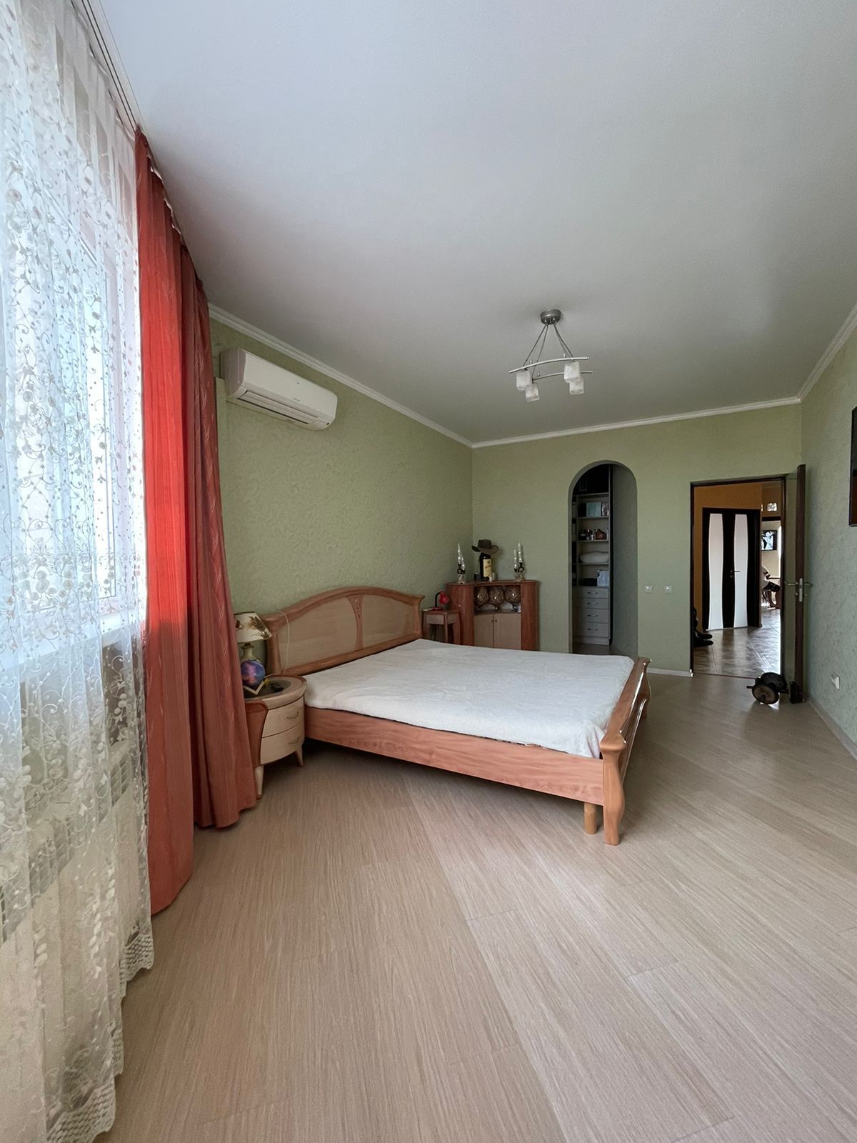 Спальная комната 18.3 кв.м., окна выходят на восточную сторону, что обеспечивает прохладу, т.к. солнце присутствует только в утренние часы.