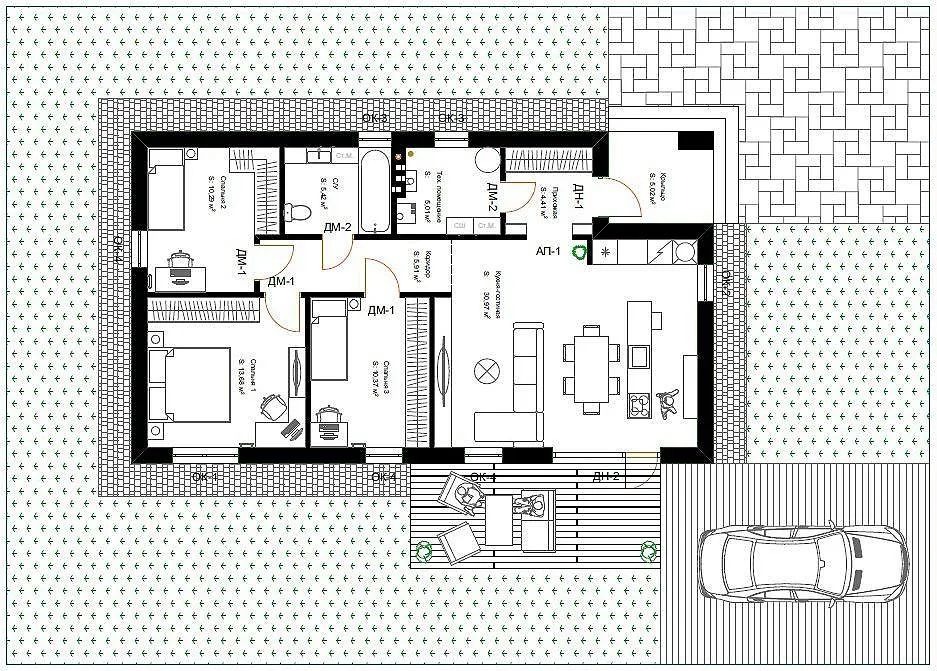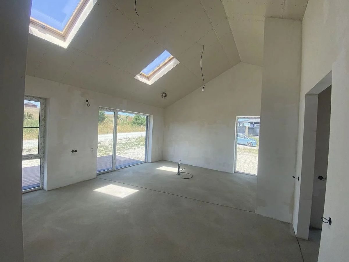 Дом в стиле барнхауса 100 кв.м. на 3,5 сотках земли. Подходит под айти и семейную ипотеку. Рядом проходит газ. Коммуникации: электричество 15 кВт, скважина, септик. В предчистовой отделке. Есть открытая терраса.