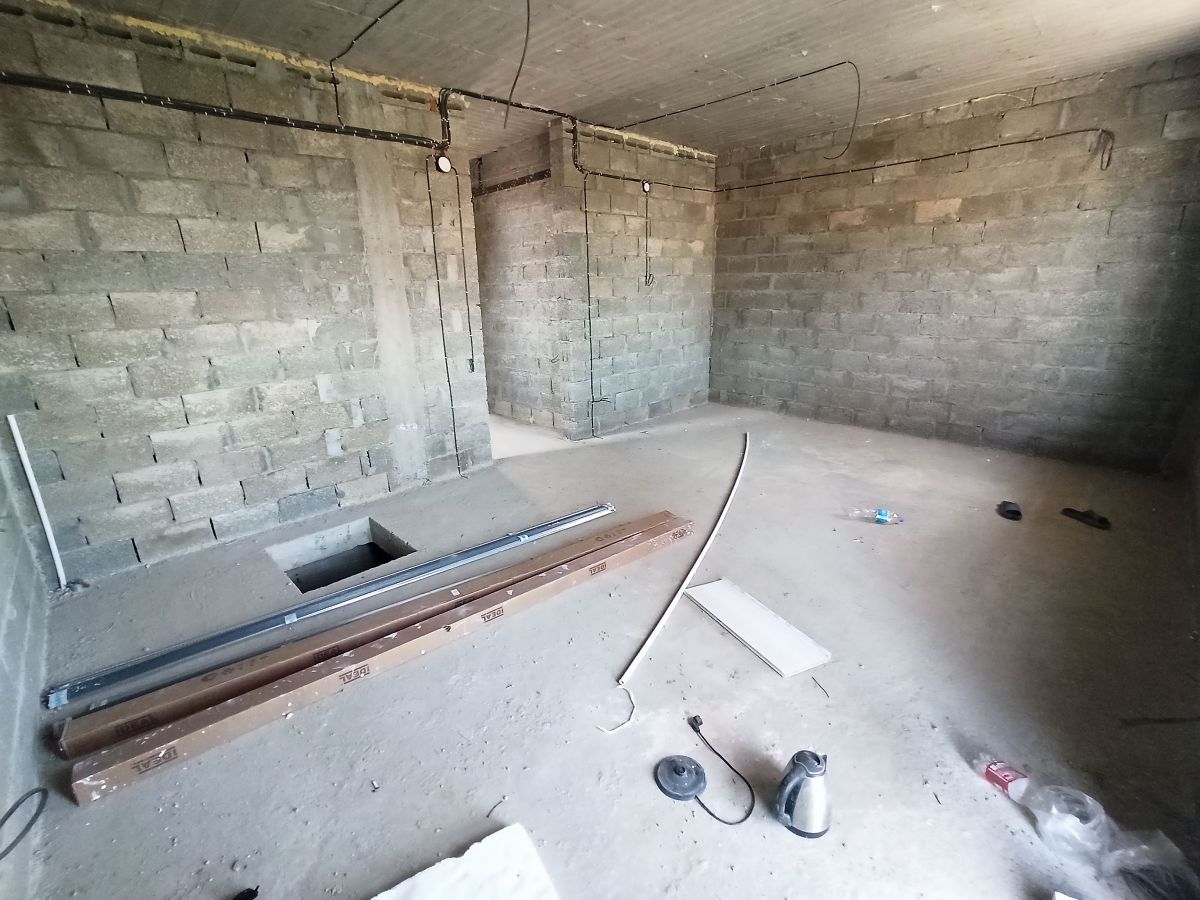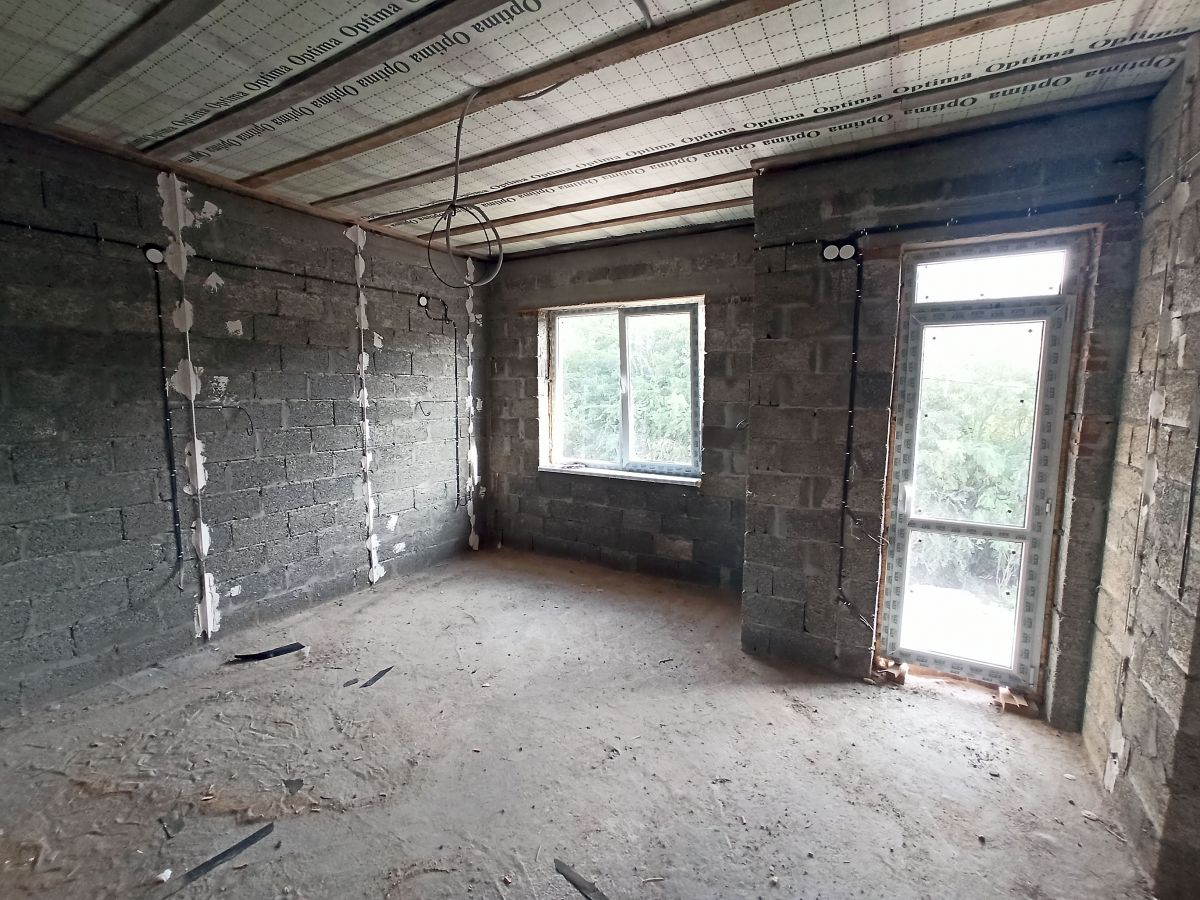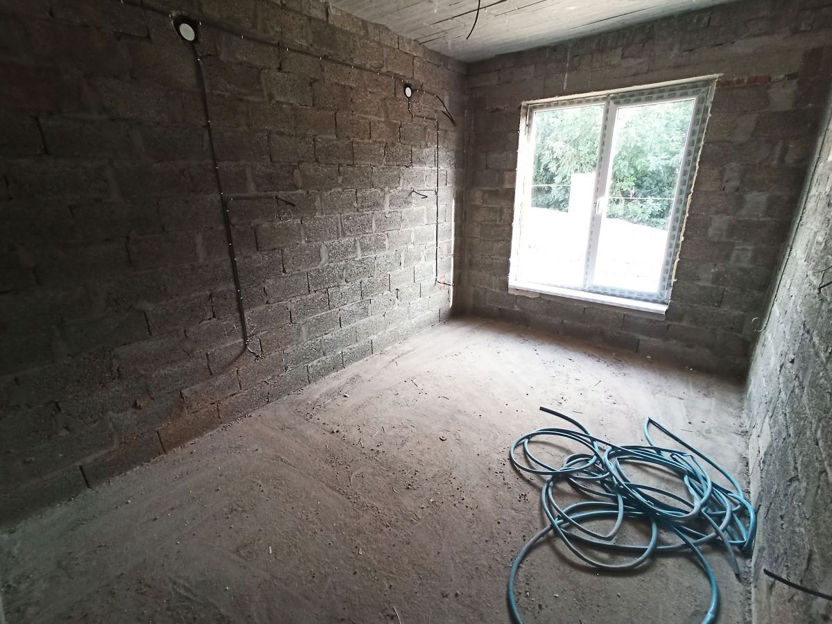 На первом этаже просторная прихожая где есть место для большого шкафа, просторный санузел, большая кухня-гостиная с выходом на просторную террасу, и одна спальная комната, также под кухней есть небольшой подвал.