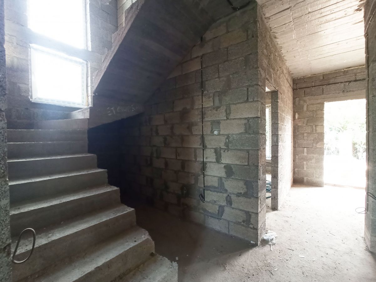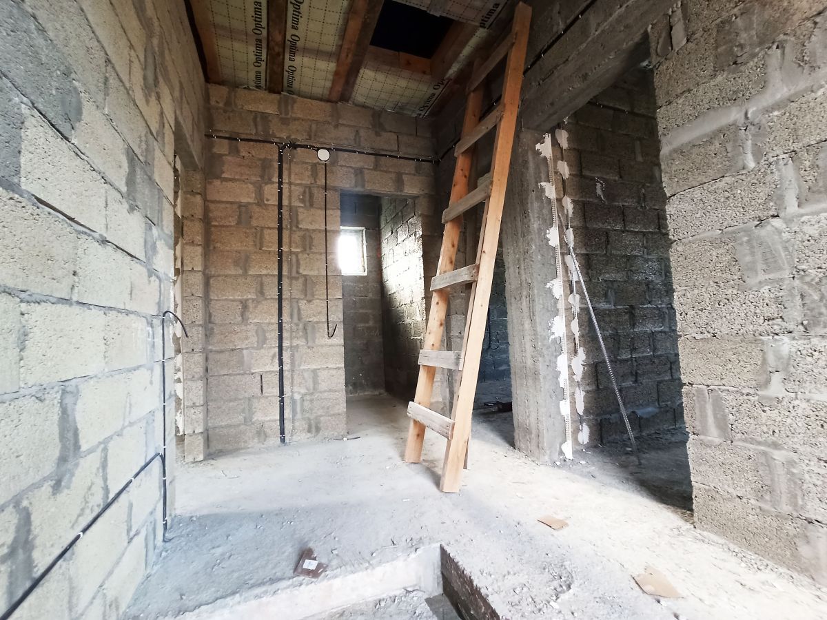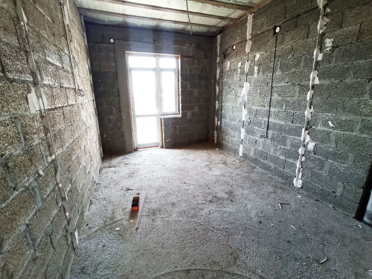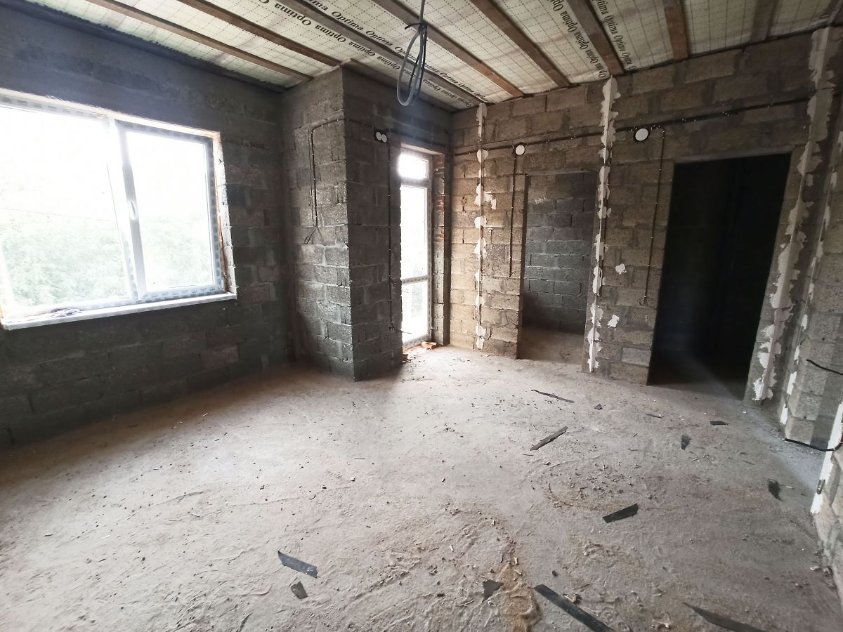 На первом этаже просторная прихожая где есть место для большого шкафа, просторный санузел, большая кухня-гостиная с выходом на просторную террасу, и одна спальная комната, также под кухней есть небольшой подвал.