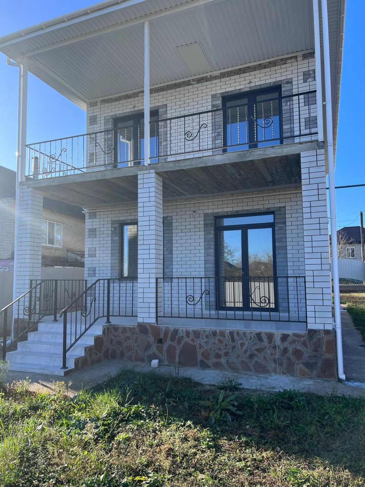 Облицовка дома белый кирпич.