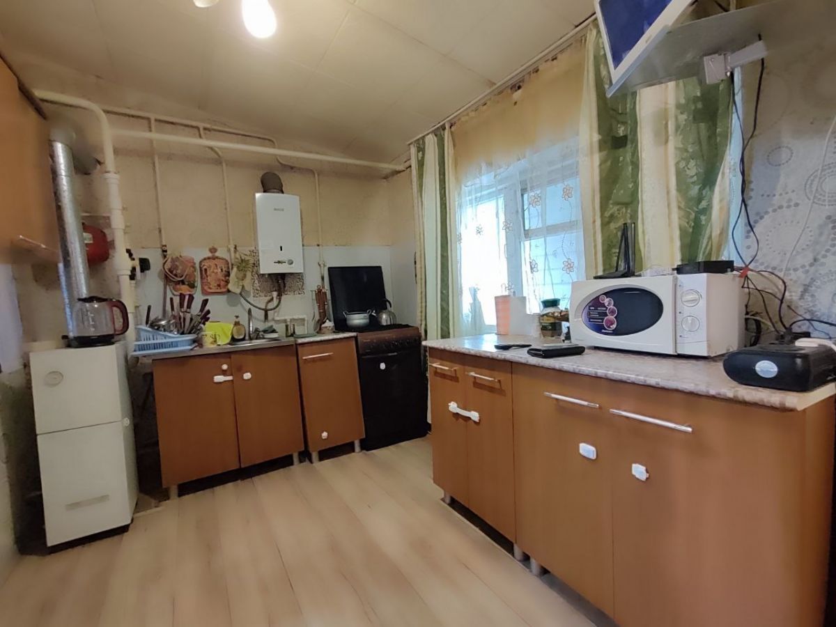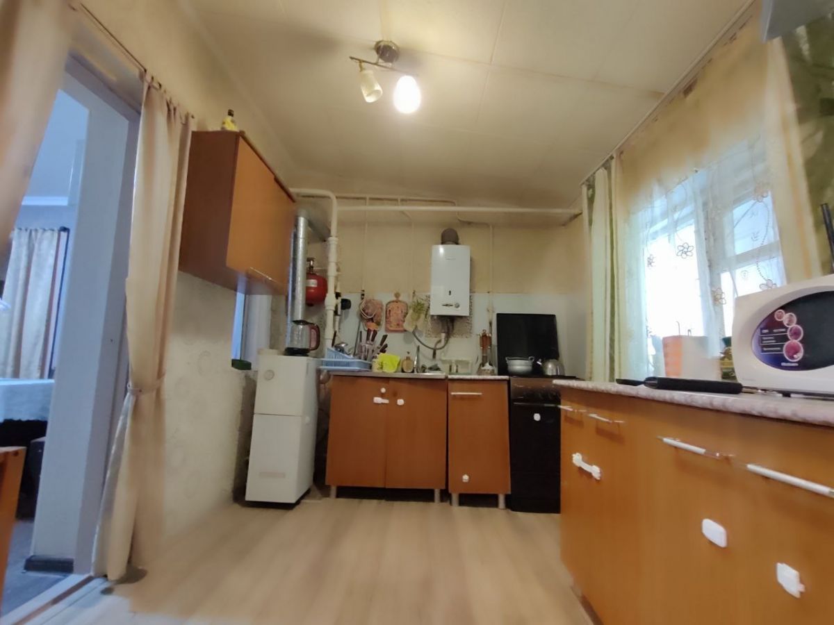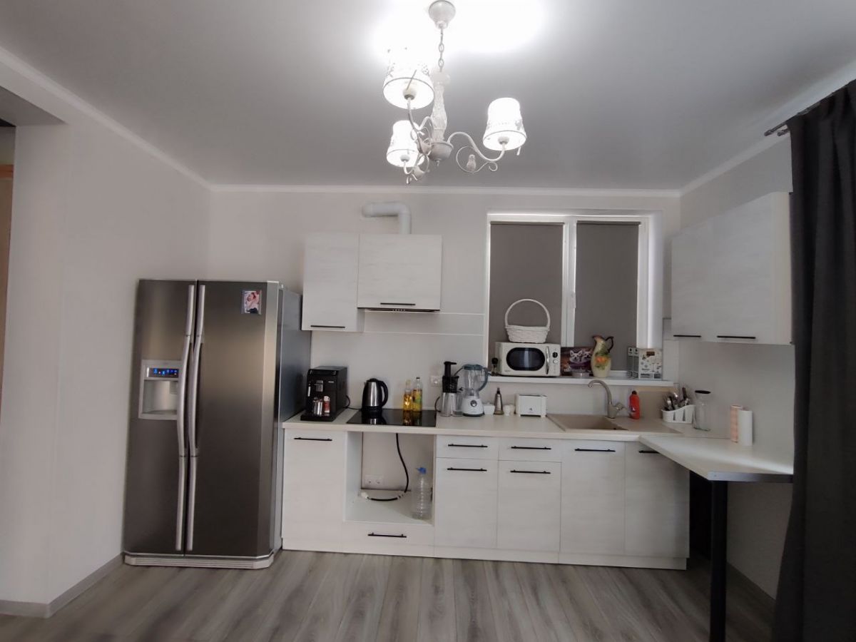 Во второй части участка построен новый дом в которой находится большая кухня гостинная, спальня, санузел и котельная. Из гостинной есть выход на террасу..
