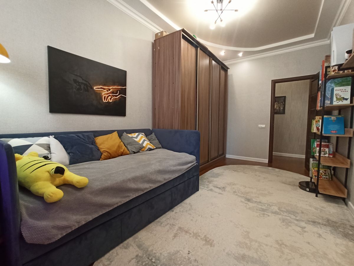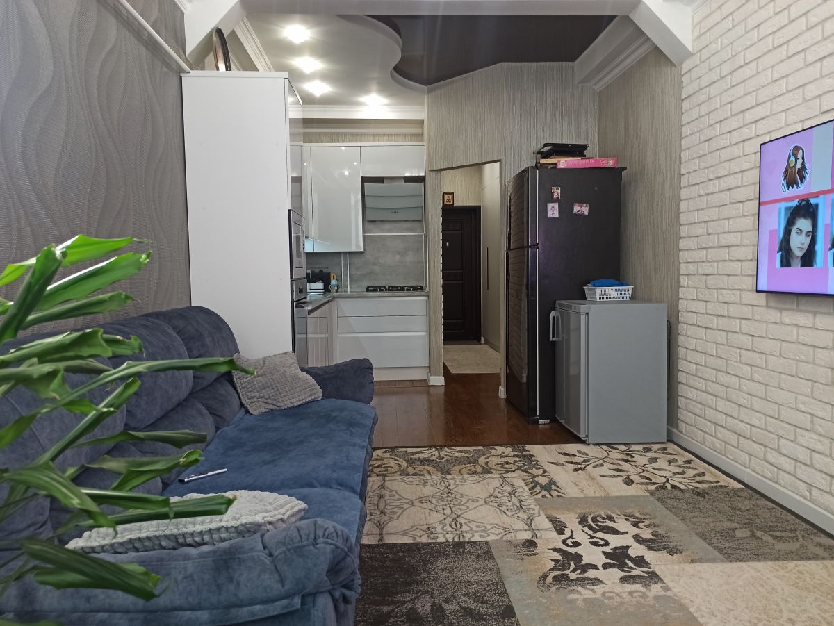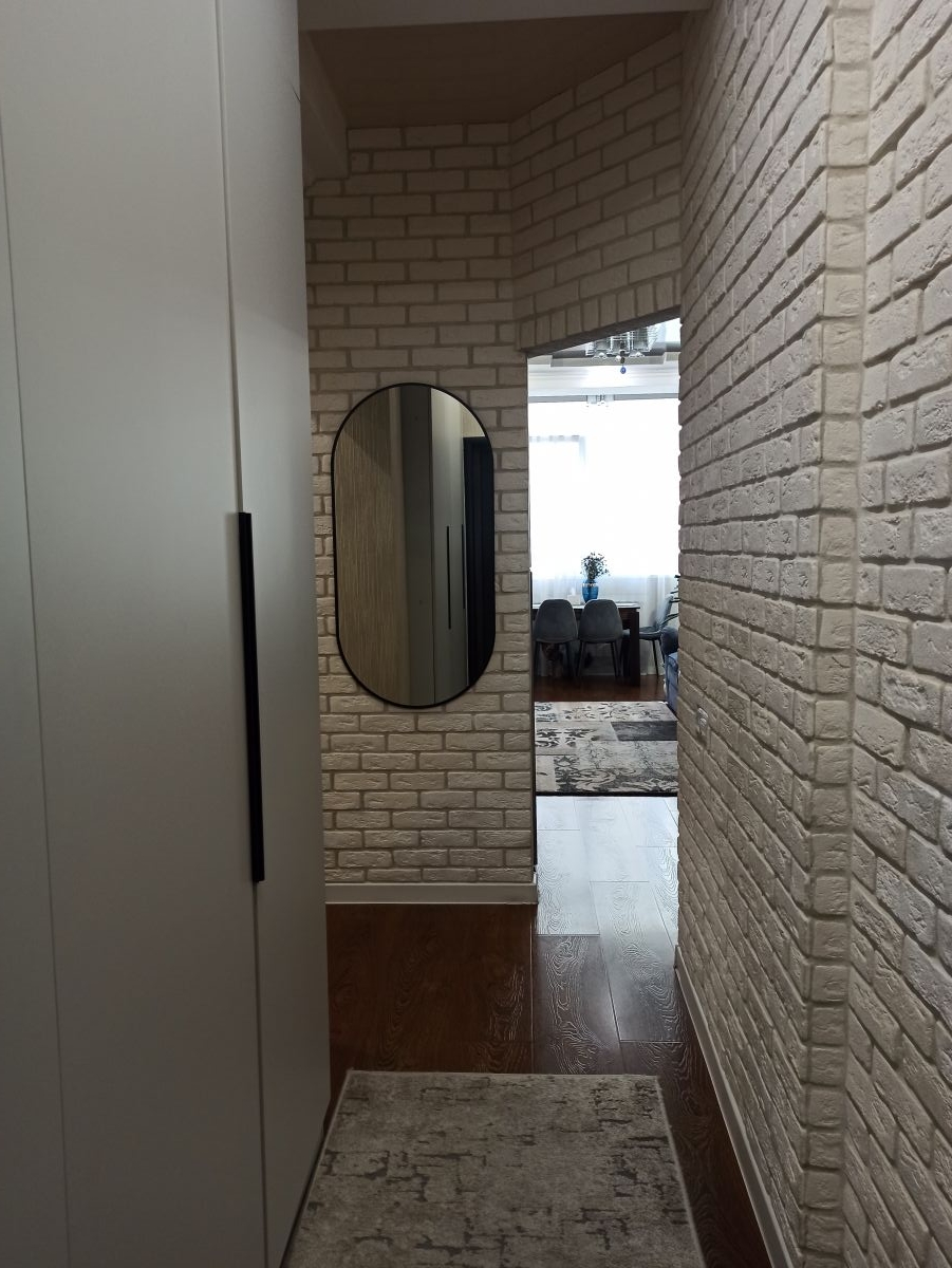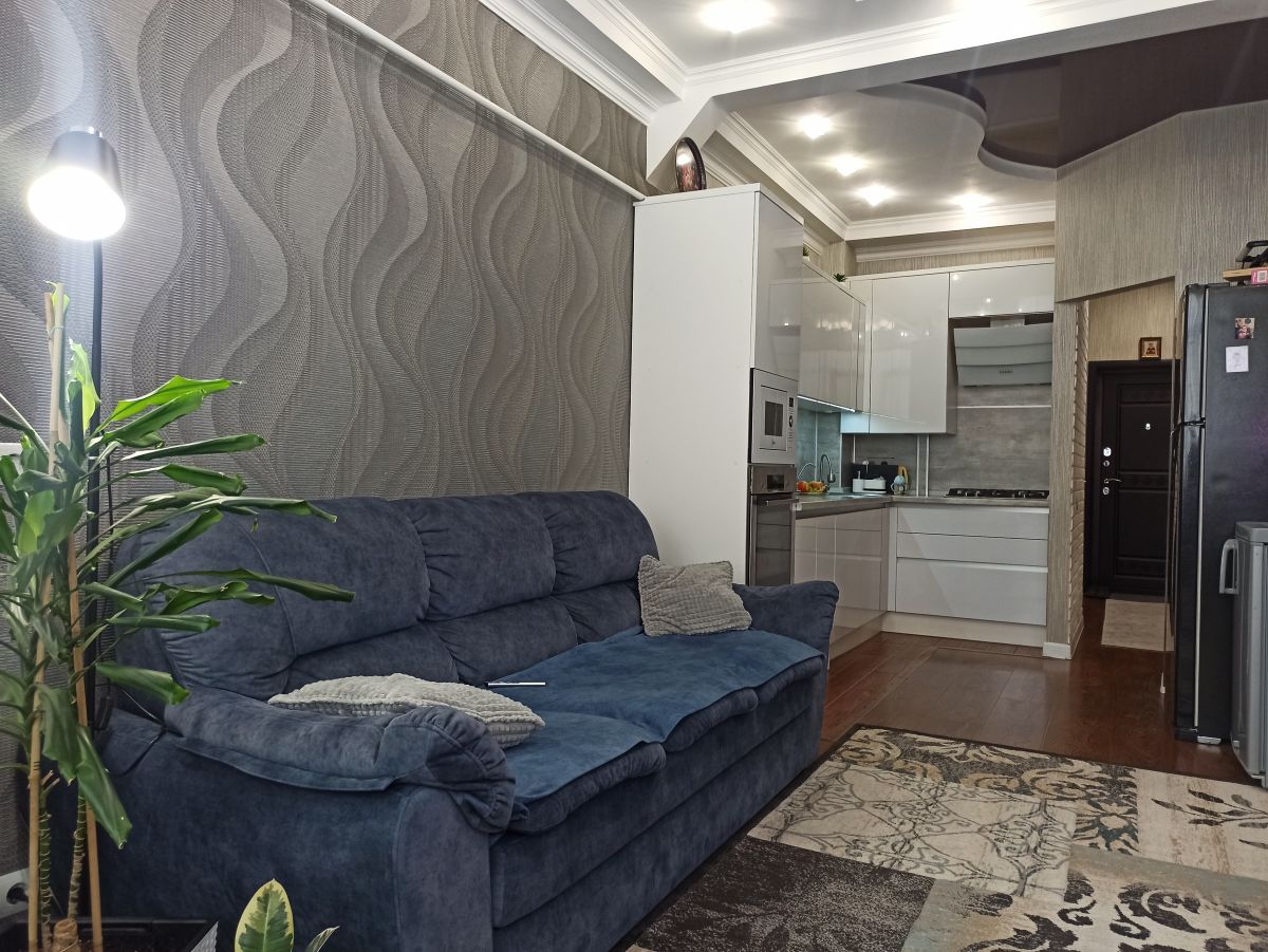 В квартире сделан хороший ремонт, встроенная кухня, хорошая техника, 2 просторные спальни, и кухня-гостиная, в прихожей большой и вместительный шкаф, в детской комнате удобный стол с естественным освещением их окна, ванная комната сделана из кафеля в спокойных тонах теплый пол, ламинат во всех комнатах, в каждой комнате кондиционеры, под тв выведено антенна и интернет.