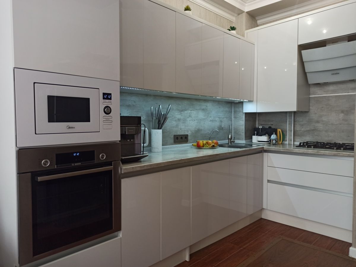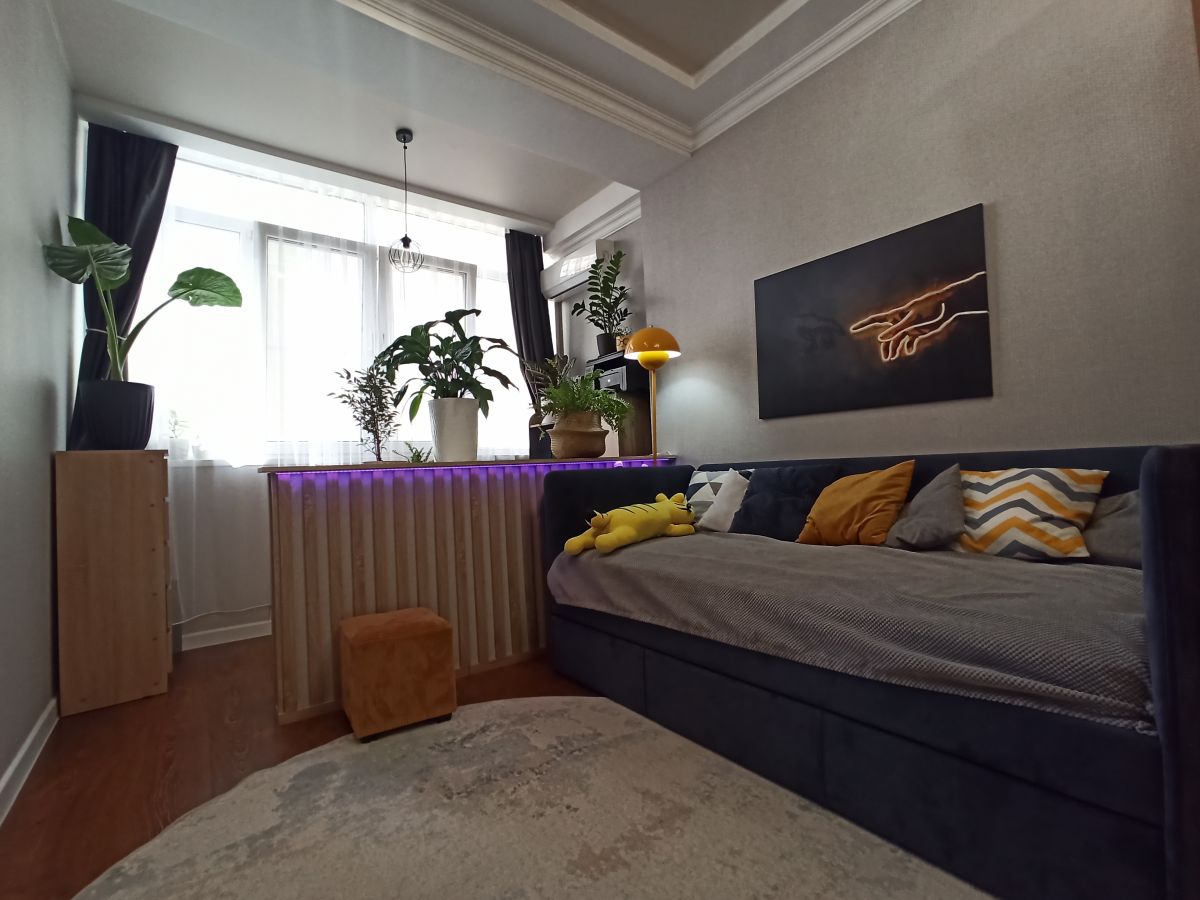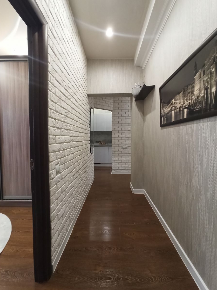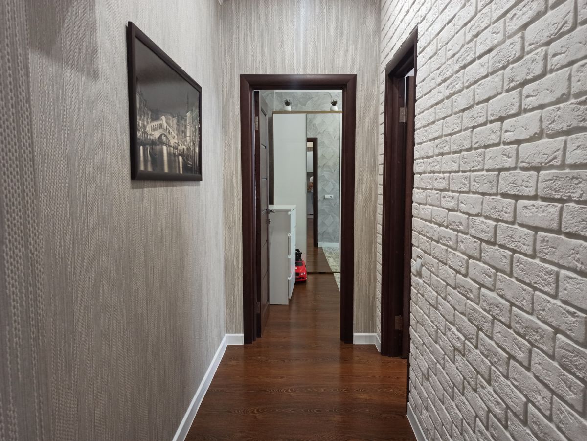 В квартире сделан хороший ремонт, встроенная кухня, хорошая техника, 2 просторные спальни, и кухня-гостиная, в прихожей большой и вместительный шкаф, в детской комнате удобный стол с естественным освещением их окна, ванная комната сделана из кафеля в спокойных тонах теплый пол, ламинат во всех комнатах, в каждой комнате кондиционеры, под тв выведено антенна и интернет.