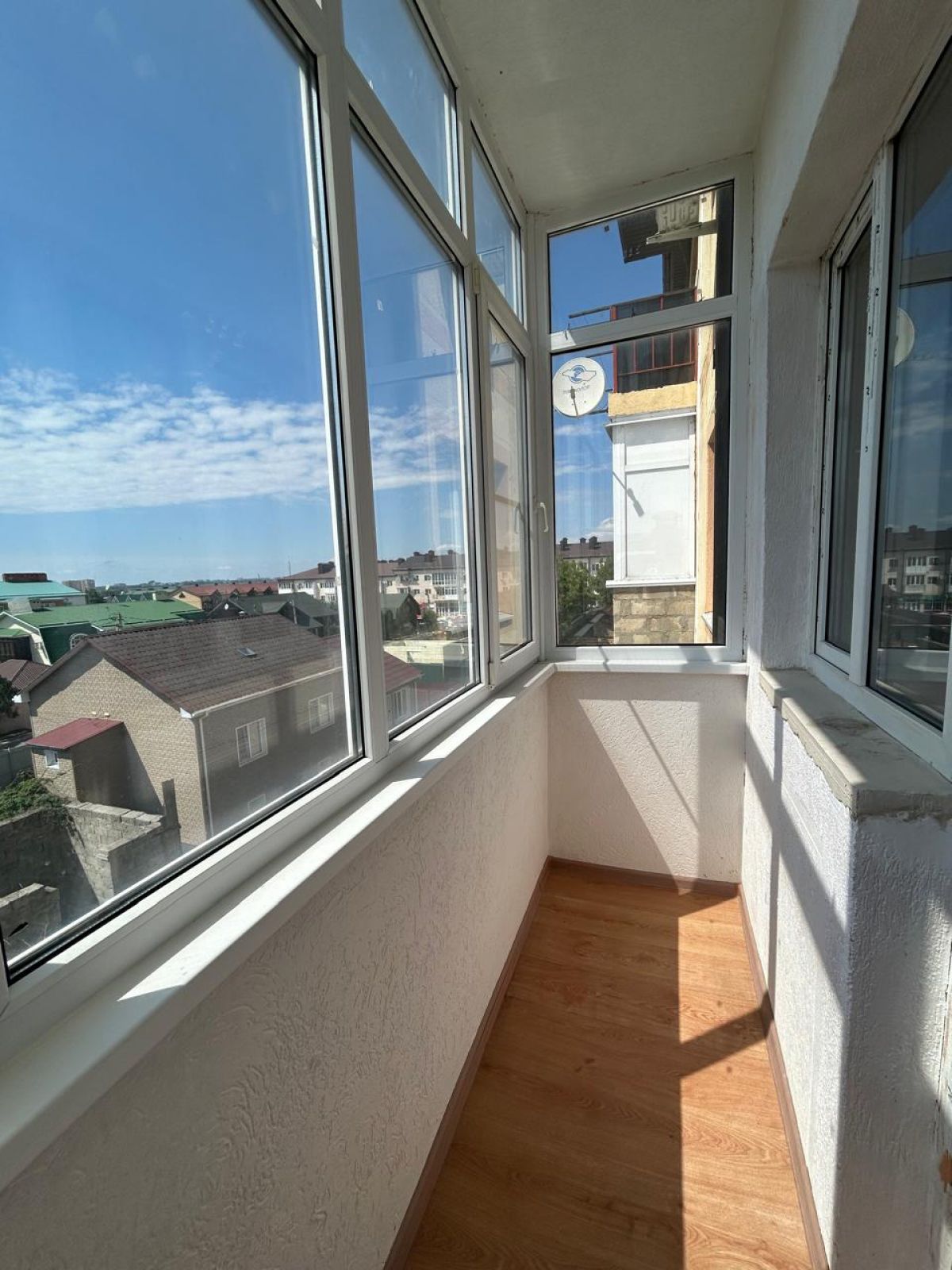 Балкон застеклен, выходит на юго-западную сторону, вид открытый и не перекроется ничем.