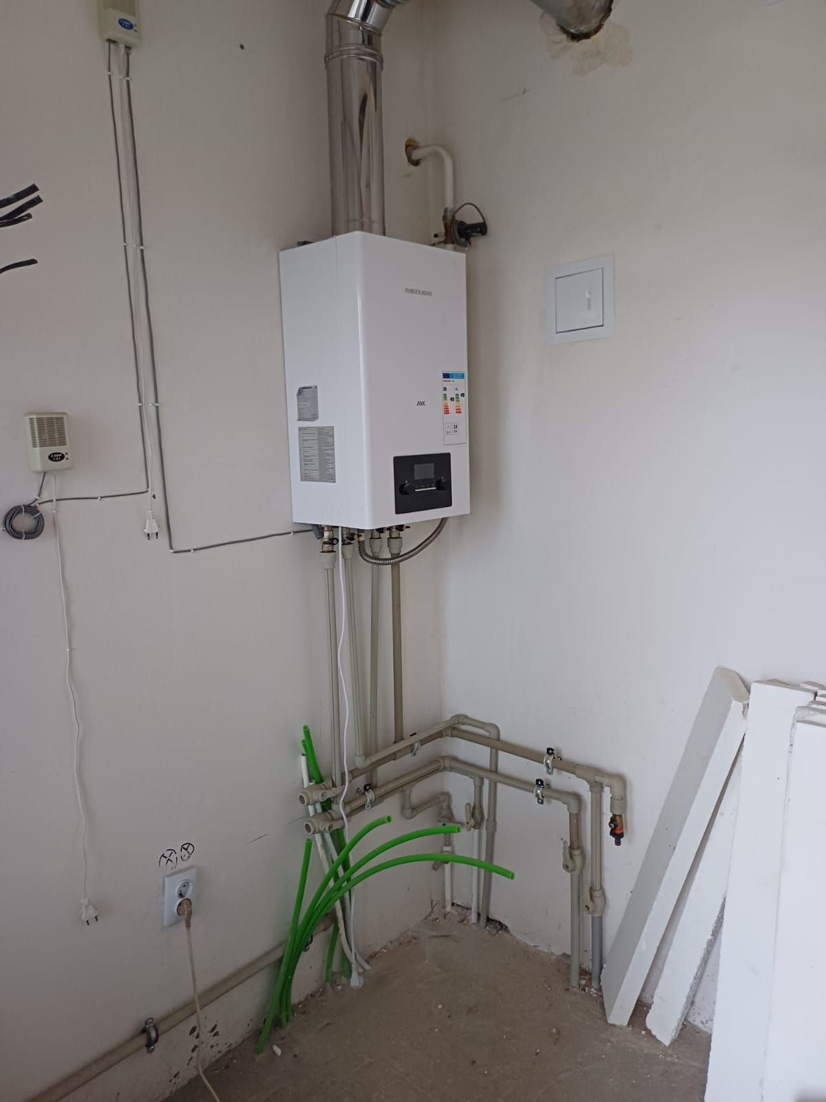Коммуникации: электричество (15 кВт.); центральное водоснабжение; индивидуальная канализация (биосептик) – 3 м.куб.; отопление – газовое; газ – центральный (в доме).