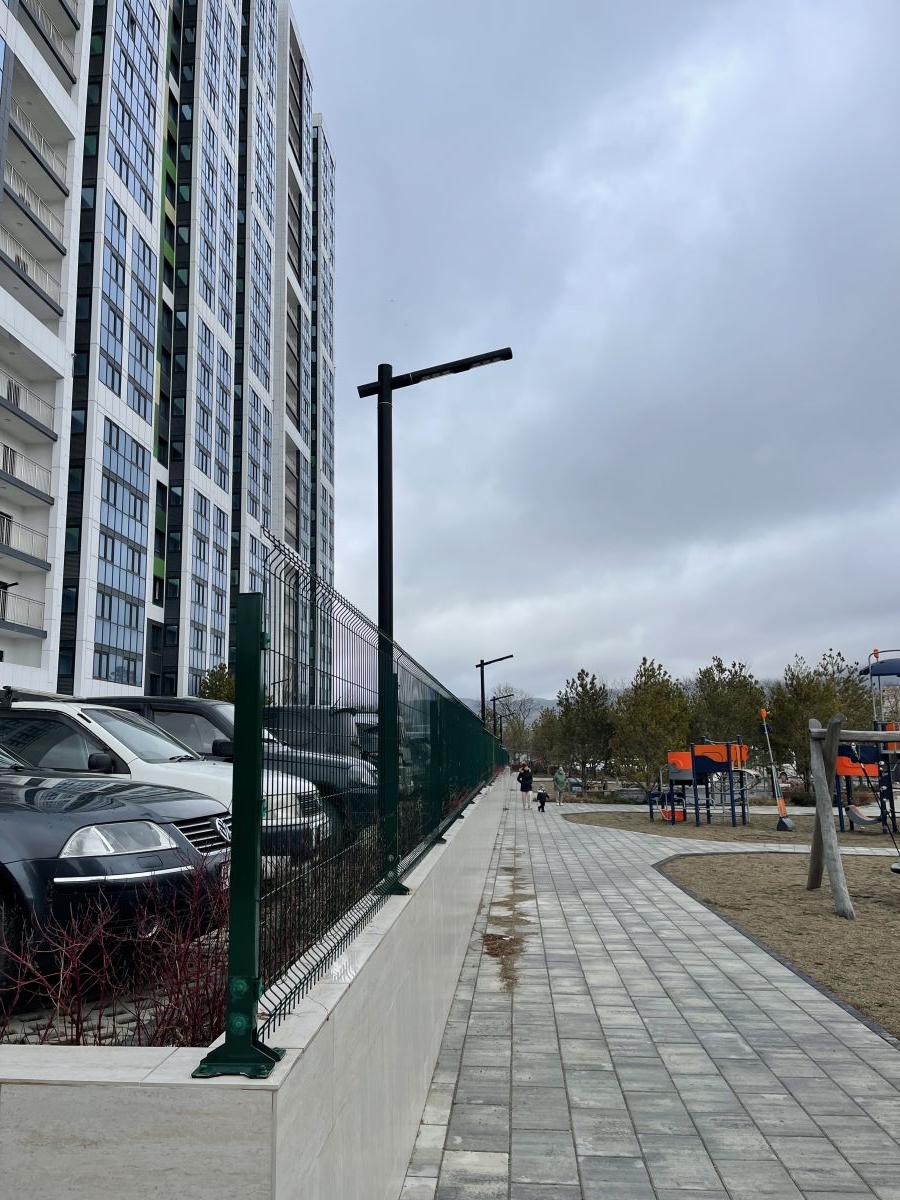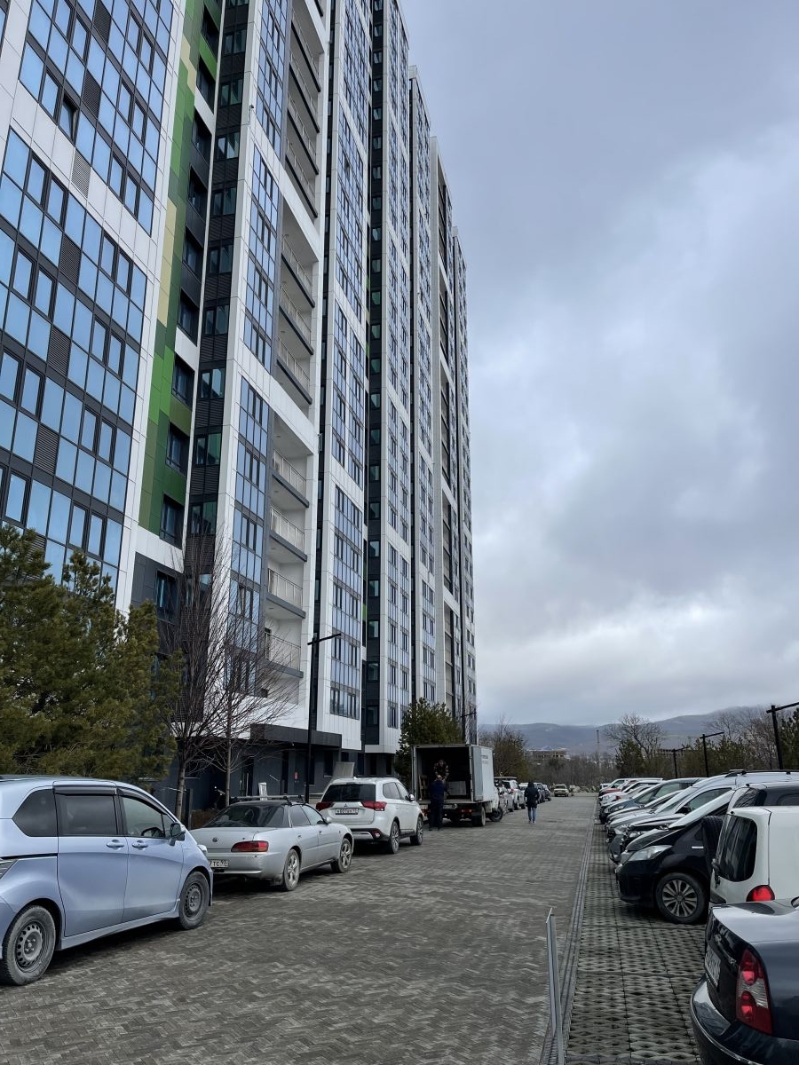 Закрытая территория, нет машин во дворе; велопарковки рядом с подъездом; обустроенная придомовая территория; объекты внутренней инфраструктуры; колясочные; кладовые; панорамные виды из окон на город и горы; накопительные резервуары для воды; специально отведенные места с дренажной системой для кондиционеров; вентилируемые фасады из алюминиевых композитных панелей; в каждом подъезде три лифта; паркинг.