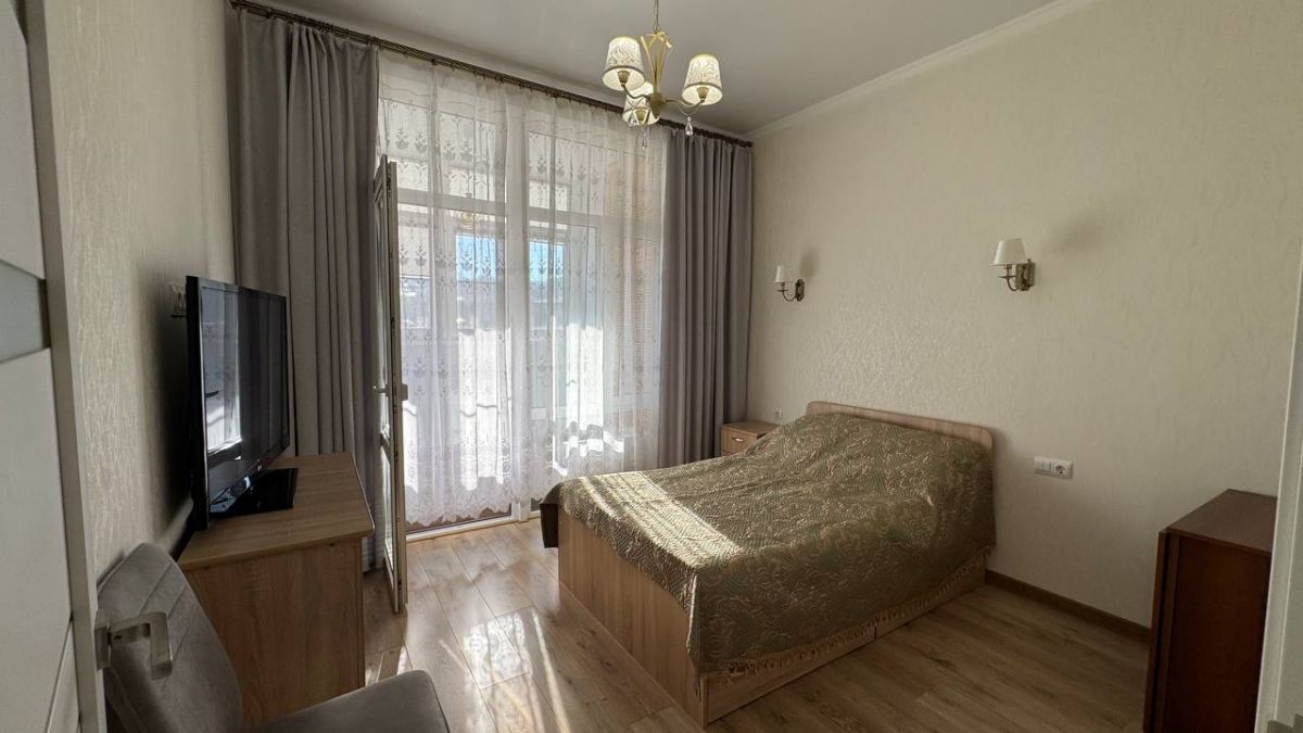 - Планировка: Просторная гостиная-холл, кухня, спальня, санузел, лоджия.