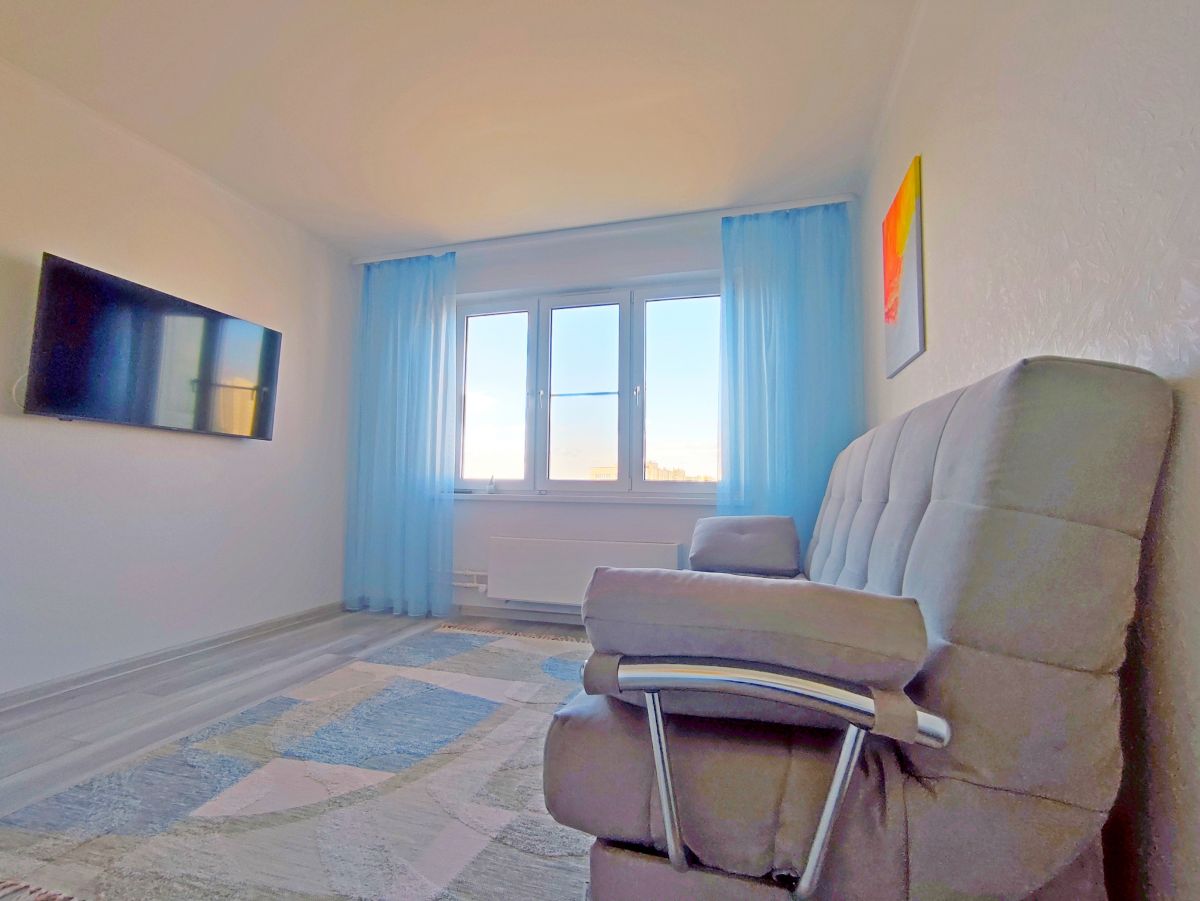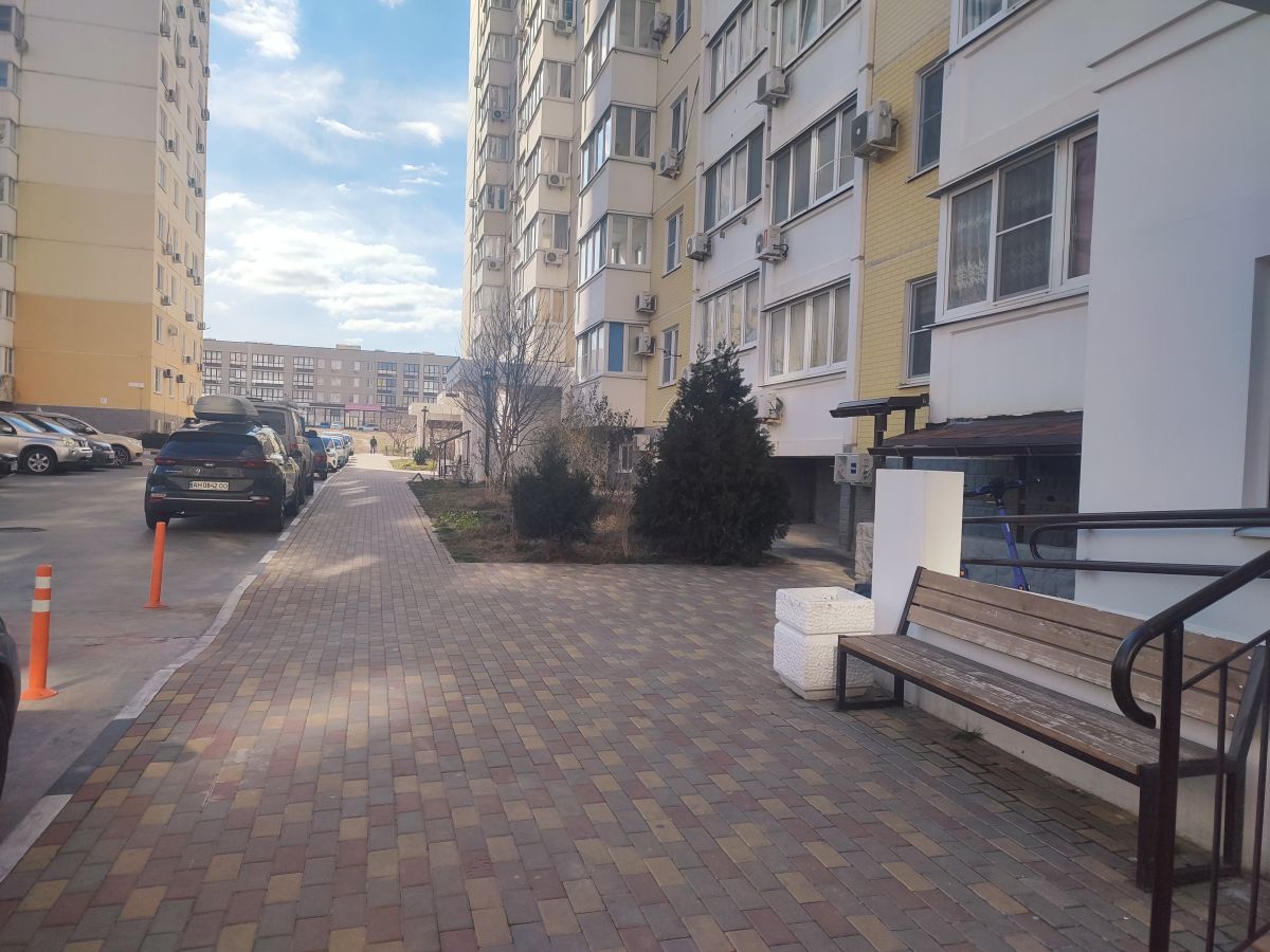 Она с новой отделкой, гардеробной комнатой и встроенной кухней. Окна квартиры выходят на строящийся Черноморский парк, но самое приятное — это панорамный вид на море.