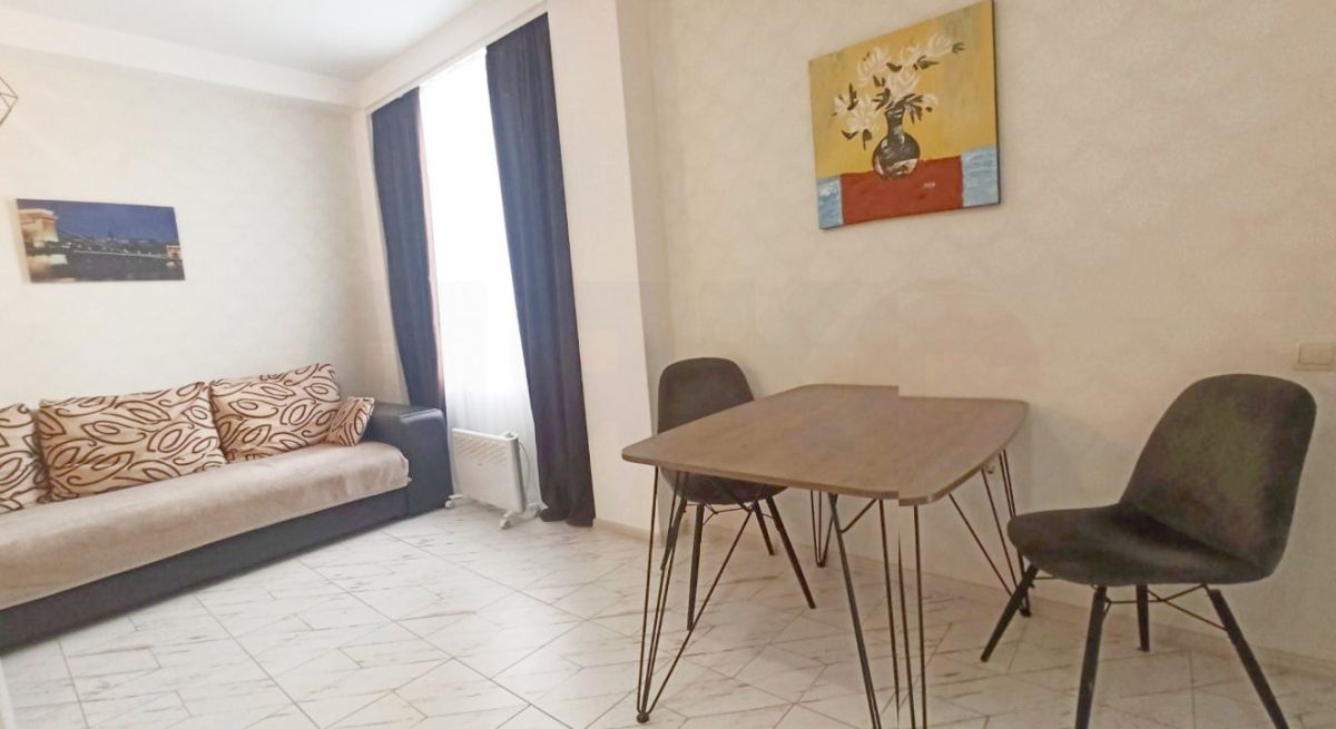 Просторная и светлая планировка: общая площадь 35,5 м², из которых 18 м² занимает просторная кухня-гостиная. Большие окна во двор обеспечивают естественное освещение.