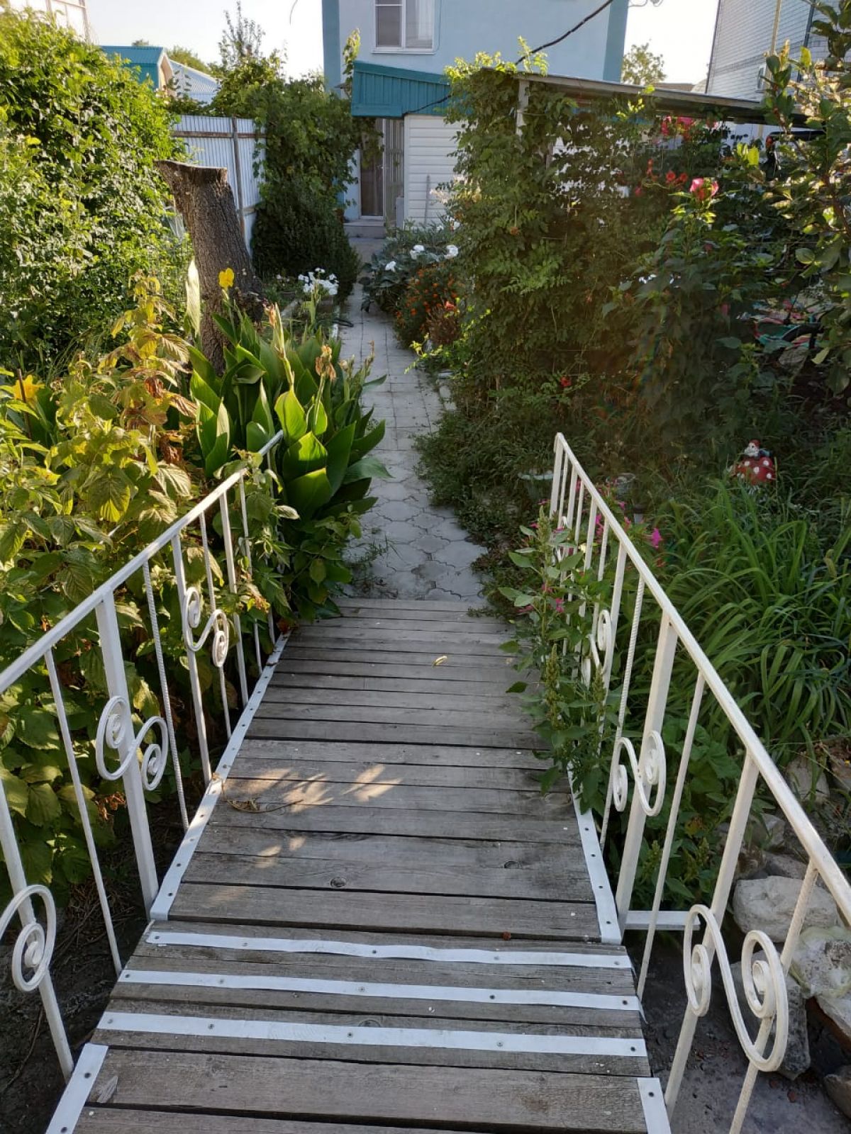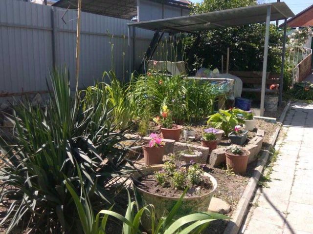 На территории участка летний душ, пристройка с дополнительной комнатой для гостей (возможно отдыхающих). Сад, большое количество роз и других декоративных растений. Фонтанчик.