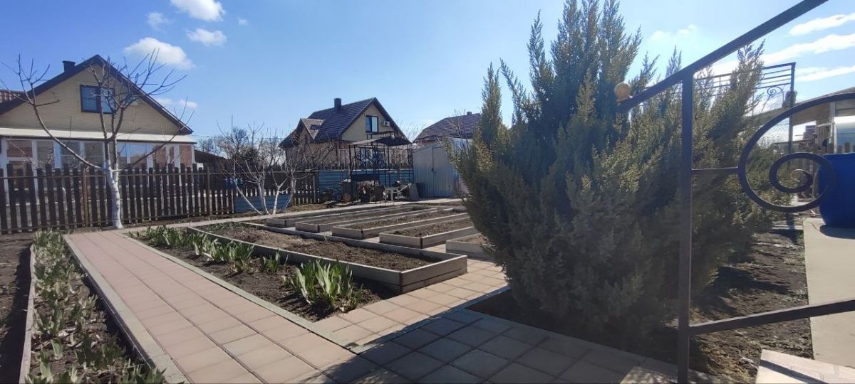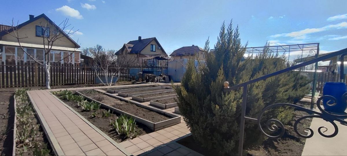 Участок 6 соток, правильной формы, просто в идеальном состоянии - много роз, вечнозеленых кустарников, плодовых деревьев. Во дворе дома, под навесом можно разместить два-три автомобиля.