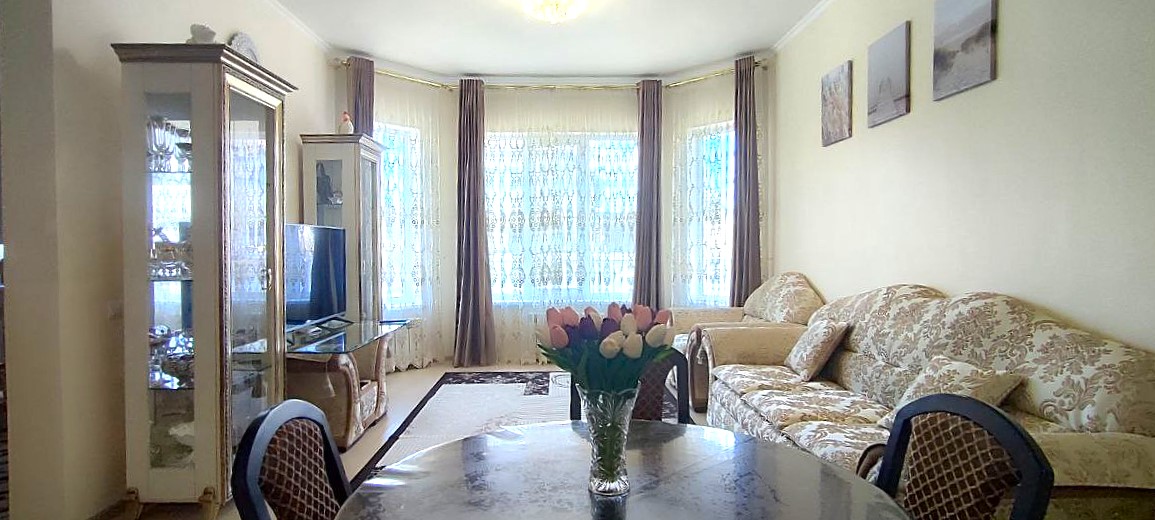В тихом и спокойном районе пригорода Анапы. В 9 км. от самого города и в 2,5 км. от песчаных пляжей , в районе х.Пятихатки, продается красивый, ухоженный и добротный дом в классическом стиле.