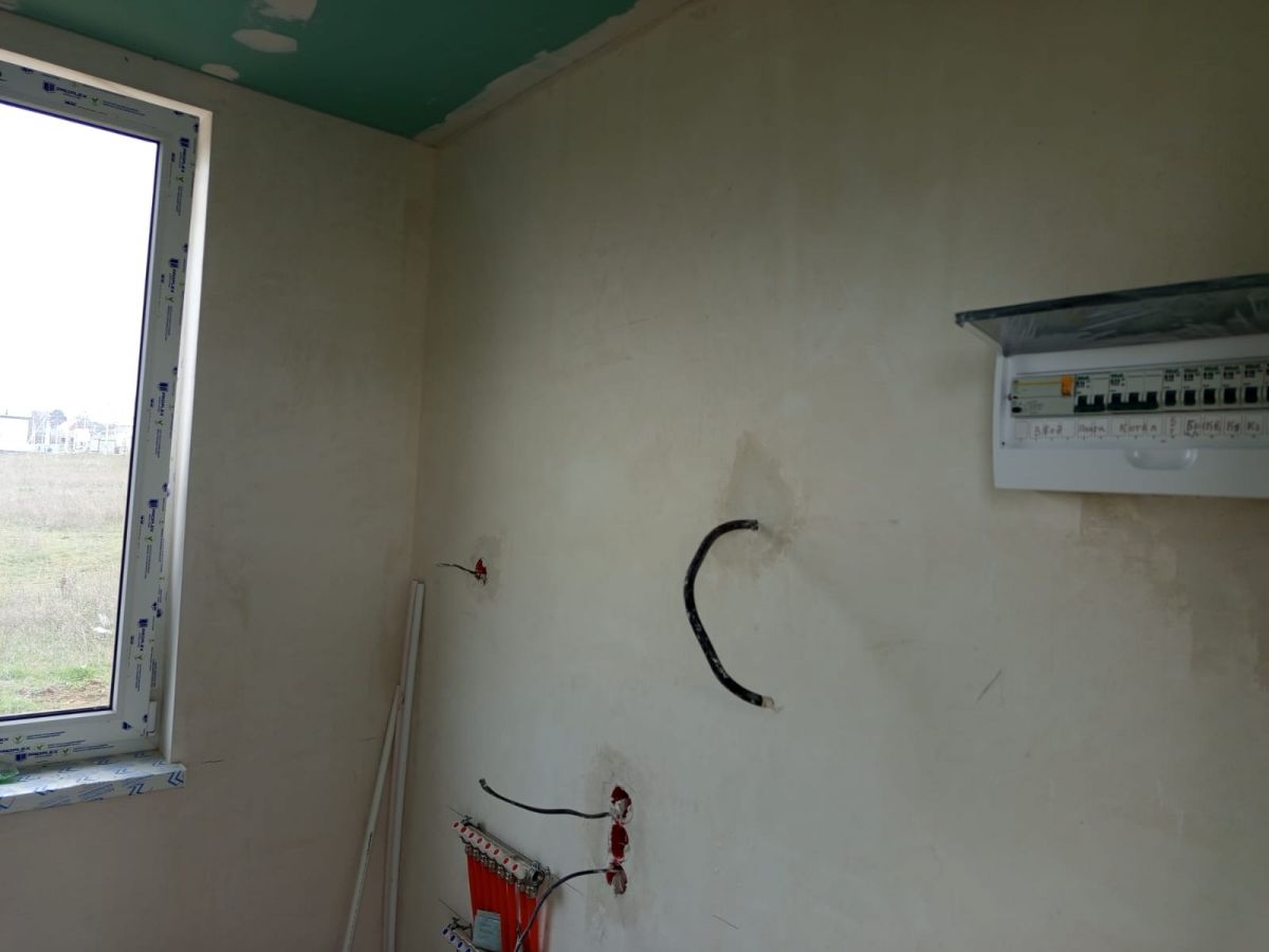 Предчистовая отделка: стяжка пола; штукатурка стен; разводка электрики (с выводами под розетки, кондиционер и ТВ); разводка труб под коммуникации; установка радиаторов отопления и электрокотла; монтаж системы "тёплый пол".