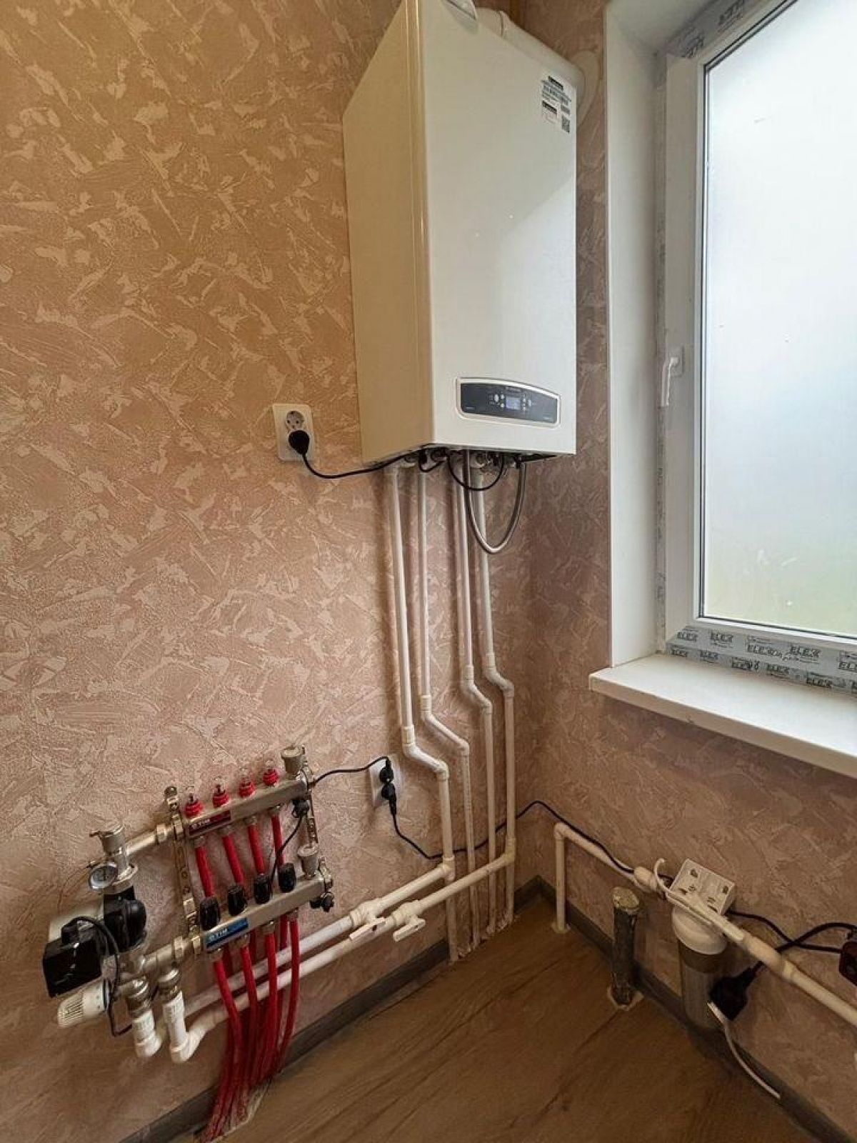 Отопление дома: водяное, теплый пол (в прихожей, кухне-гостиной и санузле), в спальнях – алюминиевые радиаторы.