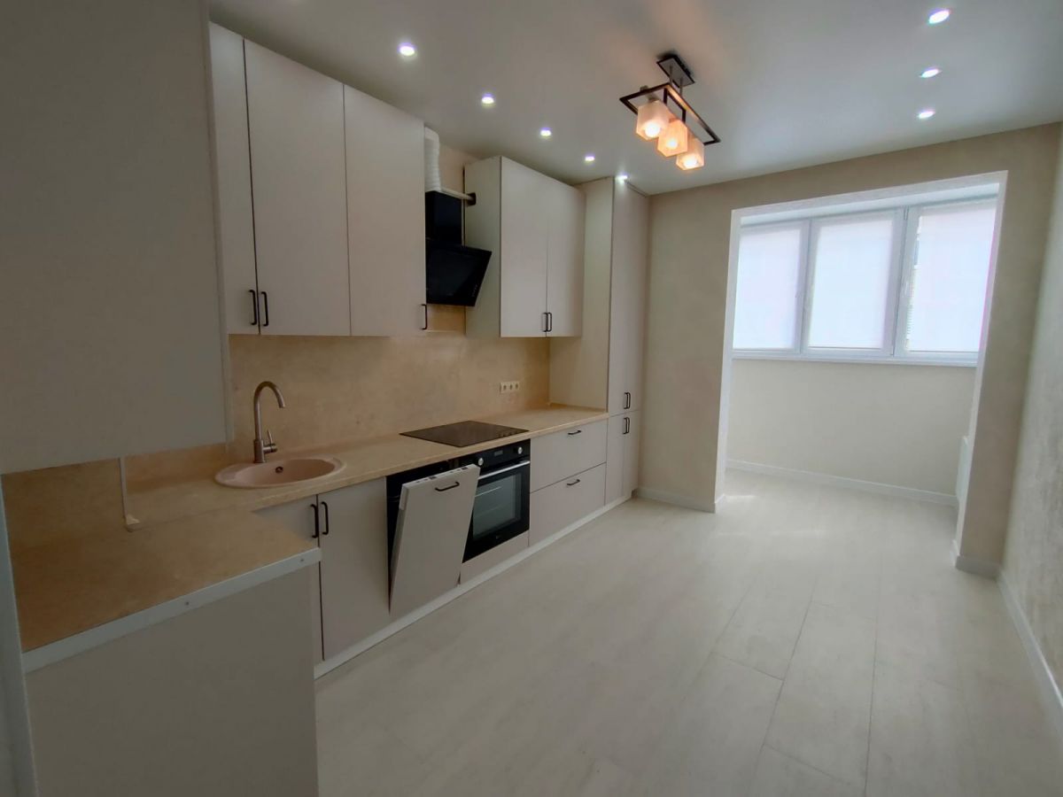 В квартире выполнен качественный ремонт, установлен кухонный гарнитур и кухонная техника.