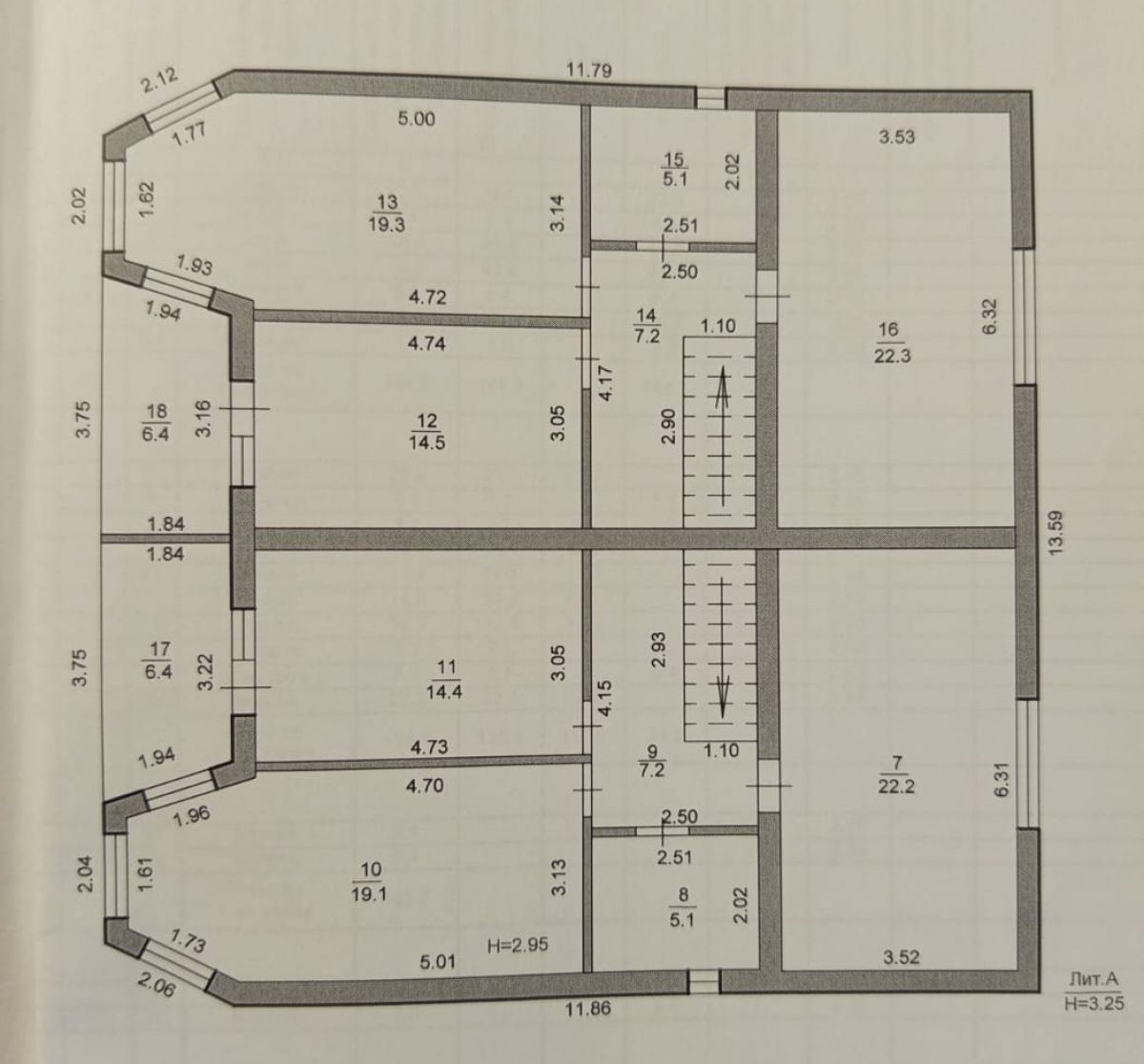 На втором этаже – холл - 7,2 м.кв., три большие комнаты-спальни: 22,3 м.кв., 19,3 м.кв. и 14,5 м.кв. с балконом - 6,4 м.кв. и просторный санузел - 5,1 м.кв..