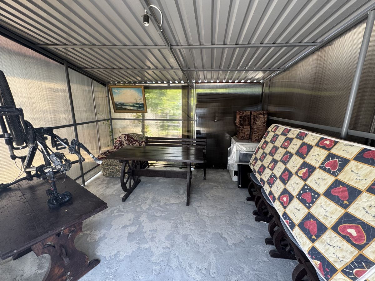 Далее есть небольшой огород с деревьями и хоз постройками, ну и выход на задний двор участка.