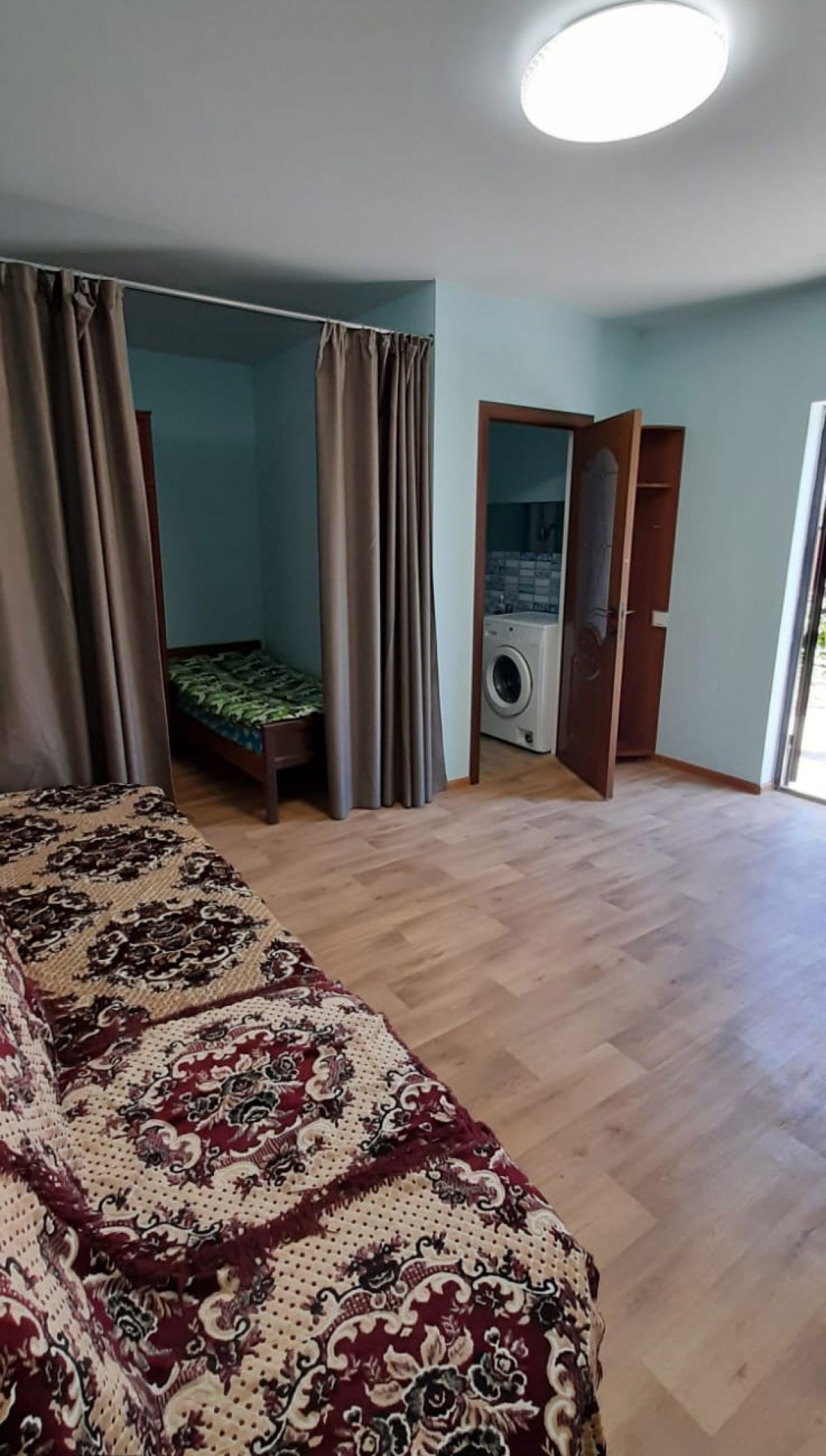 Сам дом большой и просторный с 3 выходами на улицу, есть 3 полноценные спальни, одна из них может использоваться как отдельный номер с кухней и собственным выходом в ограду и собственным санузлом.
