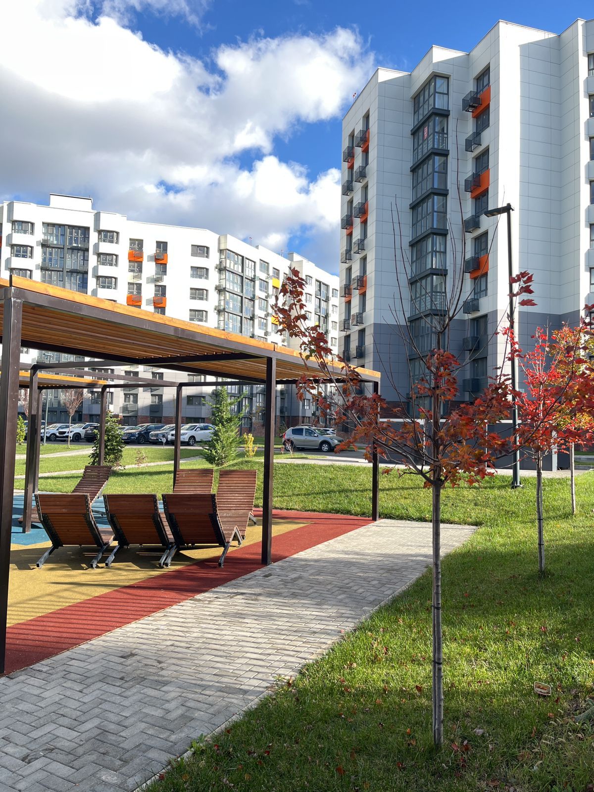 Комплекс с закрытой территорией, сдан в 2023. Большой благоустроенный двор - с парковочными площадками, детскими и спортивными площадками.