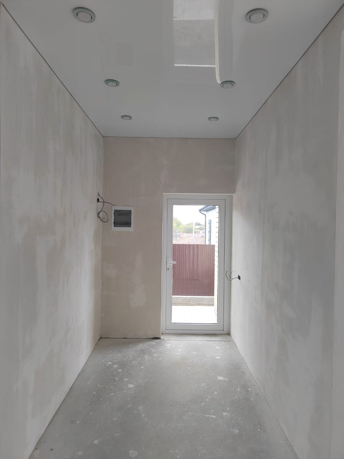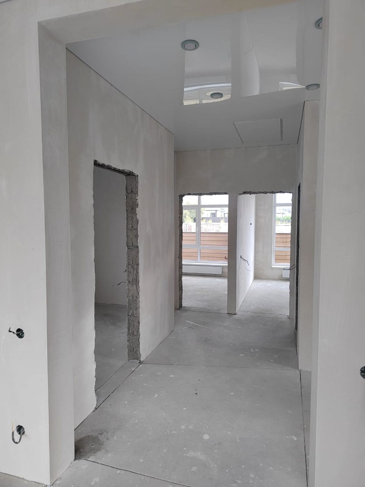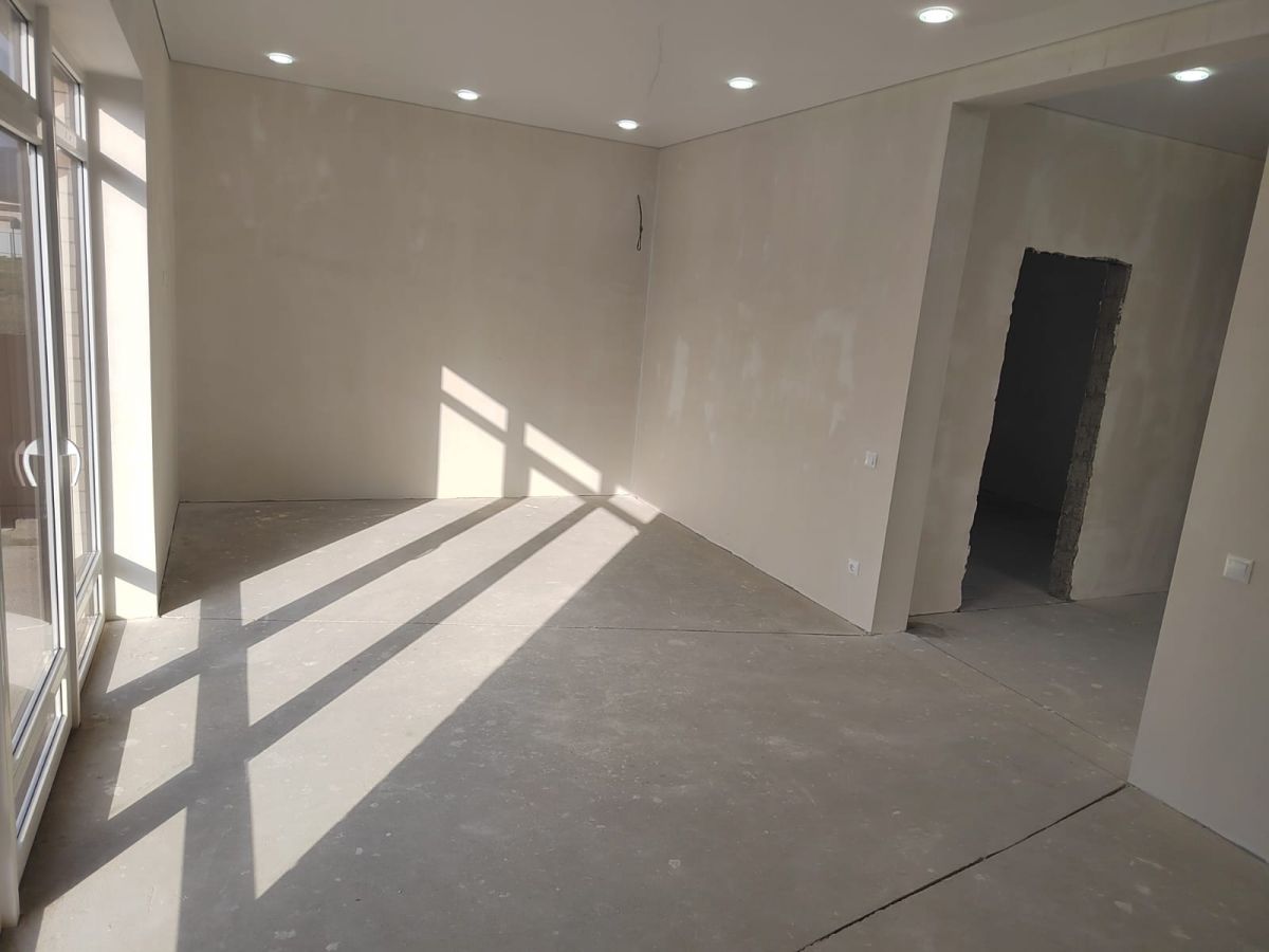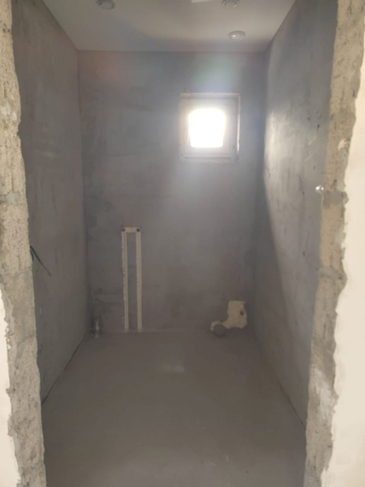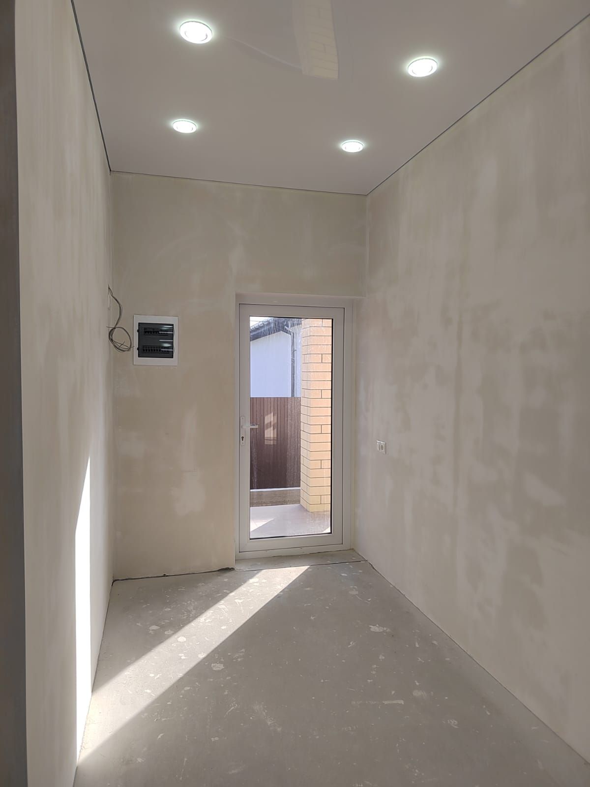 Качественная предчистовая отделка: стены оштукатурены и ошпаклеваны в два слоя, натяжные потолки с освещением.