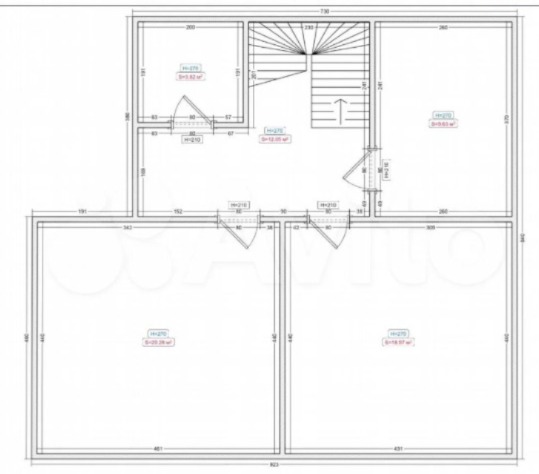 на втором этаже: холл, 3 спальни: 20 м.кв., 20 м.кв. и 11 м.кв. и санузел.