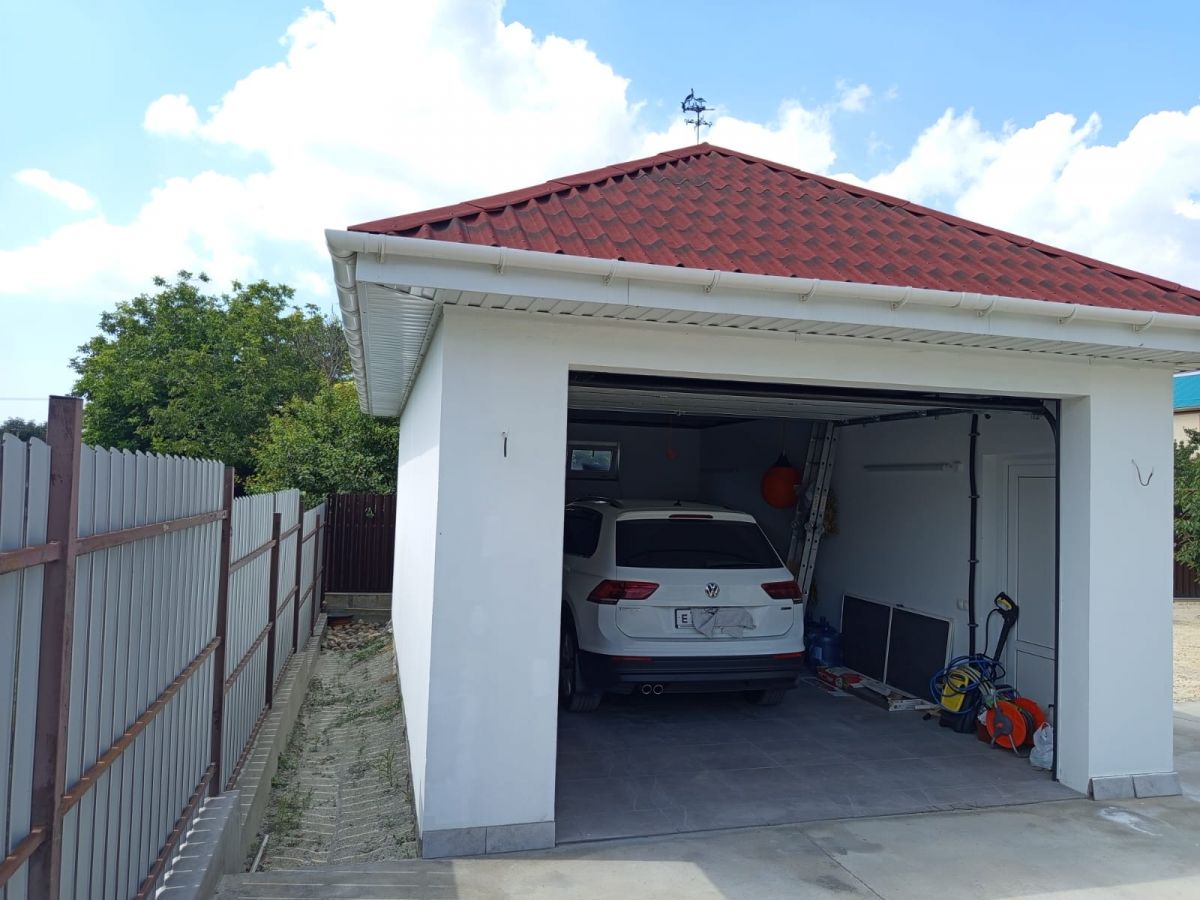 Гараж – 29,2 м.кв., дополнительное место под два автомобиля. По периметру участка ограждение из евроштакетника. Откатные ворота на электроприводе (с пульта), калитка.