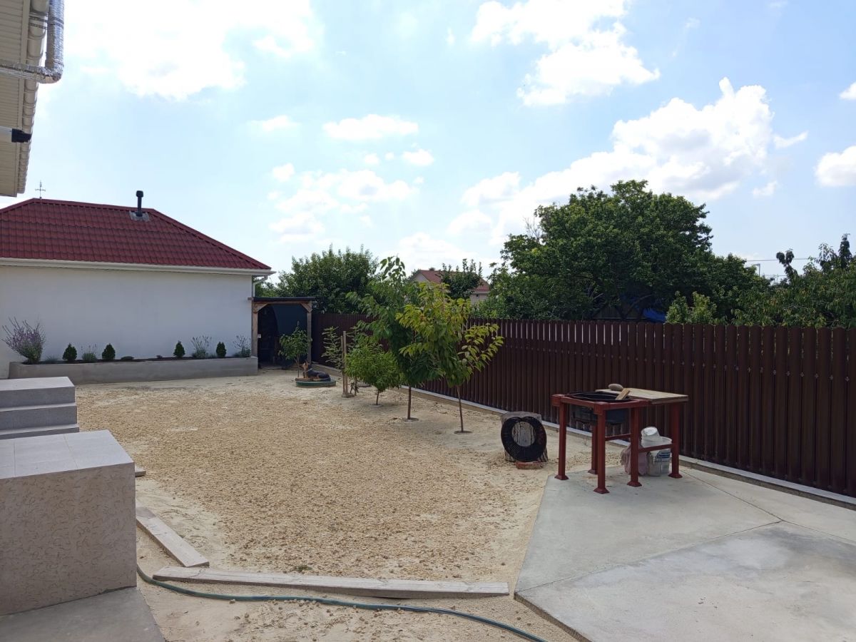 Вокруг дома и придомовой территории отмостка, бетонная парковка, молодой сад, клумбы с цветами. На придомовой территории много зелени, фруктовые деревья, детская площадка. Магазины рядом! До центральной дороги – 150 метров!