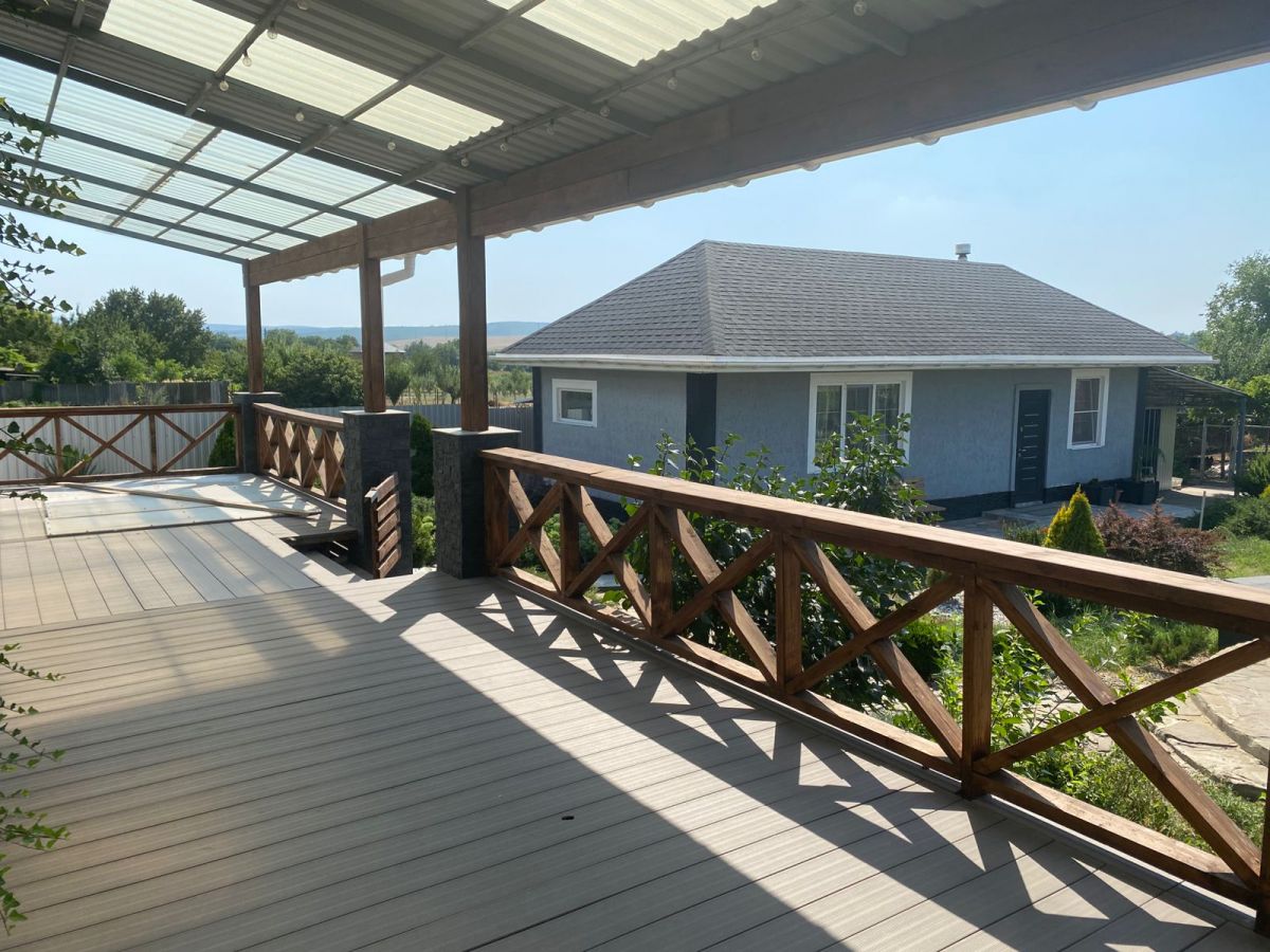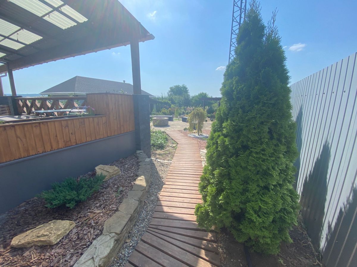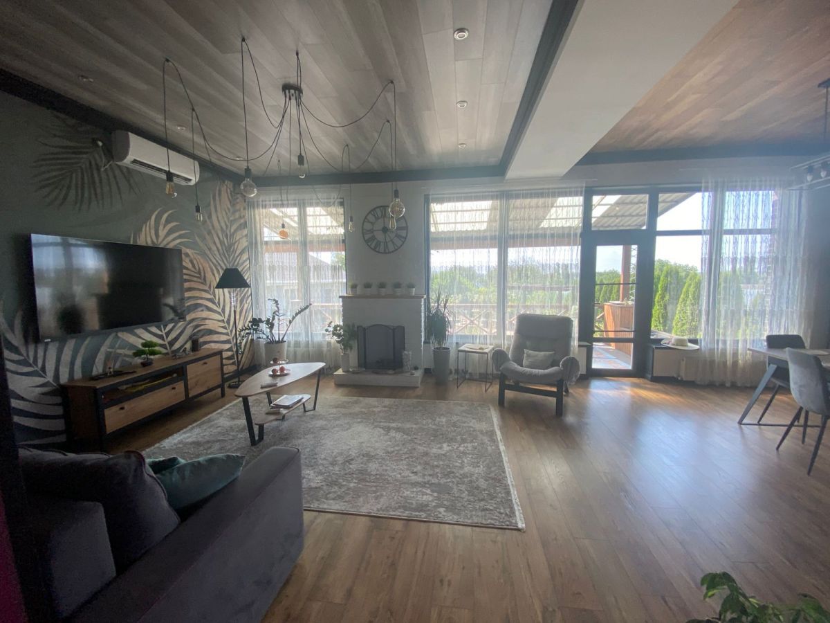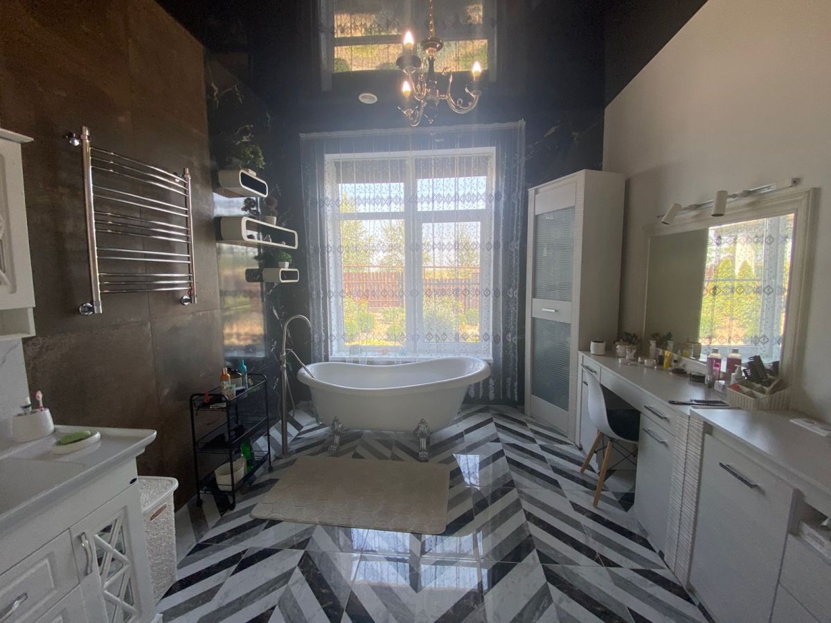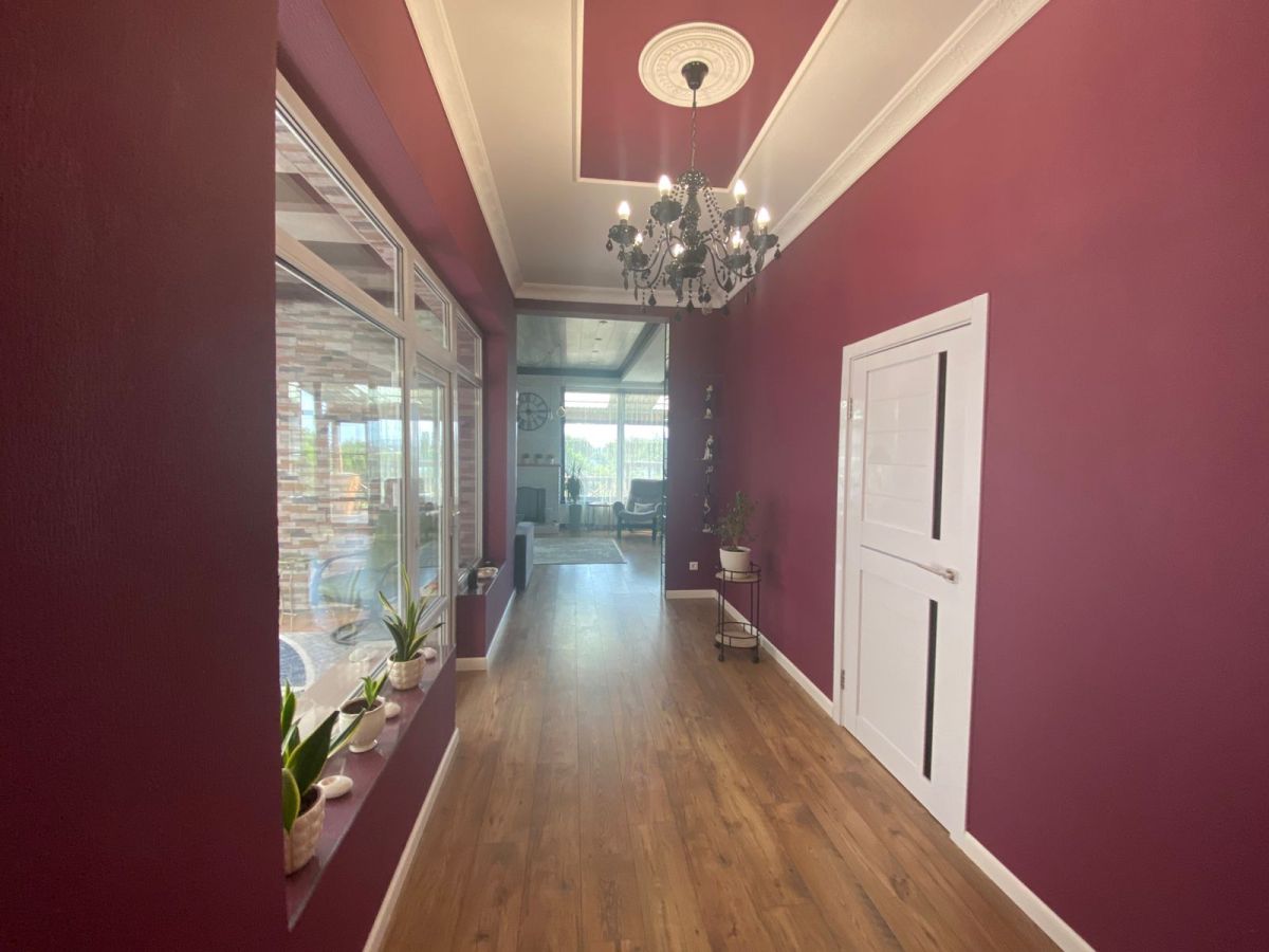 Дом 248 м.кв., 3 спальни и кухня гостиная, гардеробная, и удобная бойлерная. С коридора выход в благоустроенный гараж. Еще есть две оранжерейные комнаты. Во всём доме смонтирован тёплый пол. Так как мебель в дом приобреталась под дизайн то она вся остаётся, включая технику.
