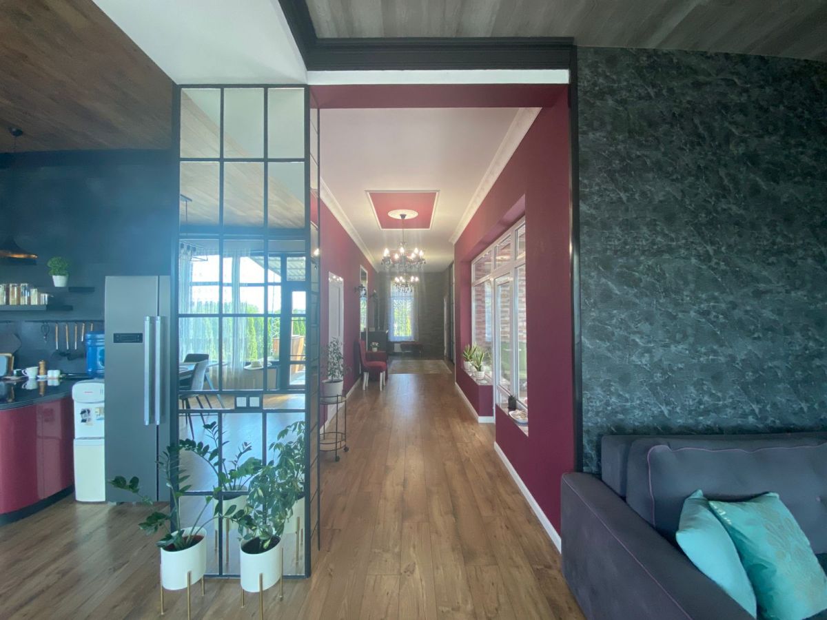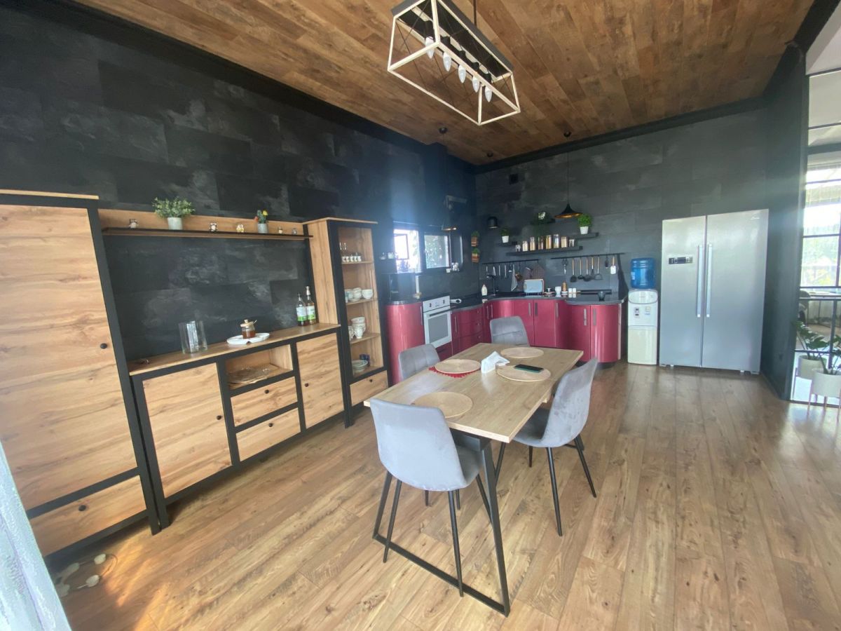 Просторная кухня площадью 43.6 м² с дизайнерским ремонтом станет настоящей находкой для любителей кулинарии. Панорамное остекление открывает потрясающие виды на окружающий сад и огород.