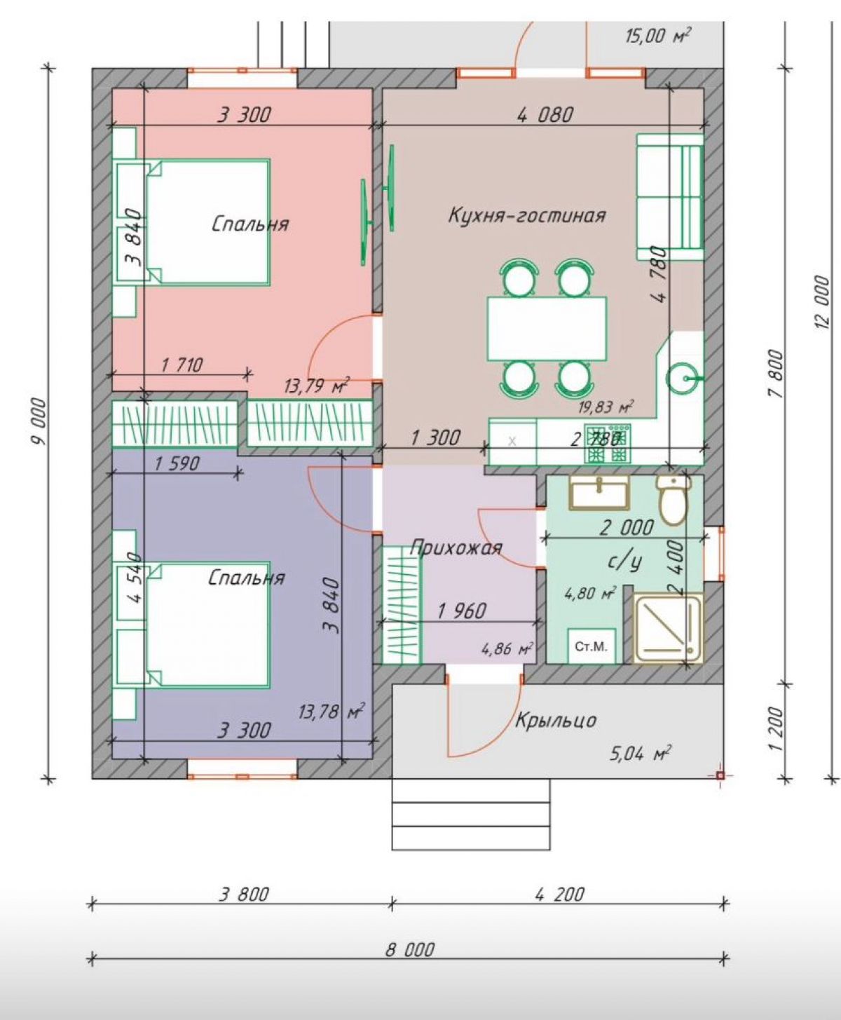 ✔️ В доме 2 спальни 13,78 м.кв и 13,79 м.кв