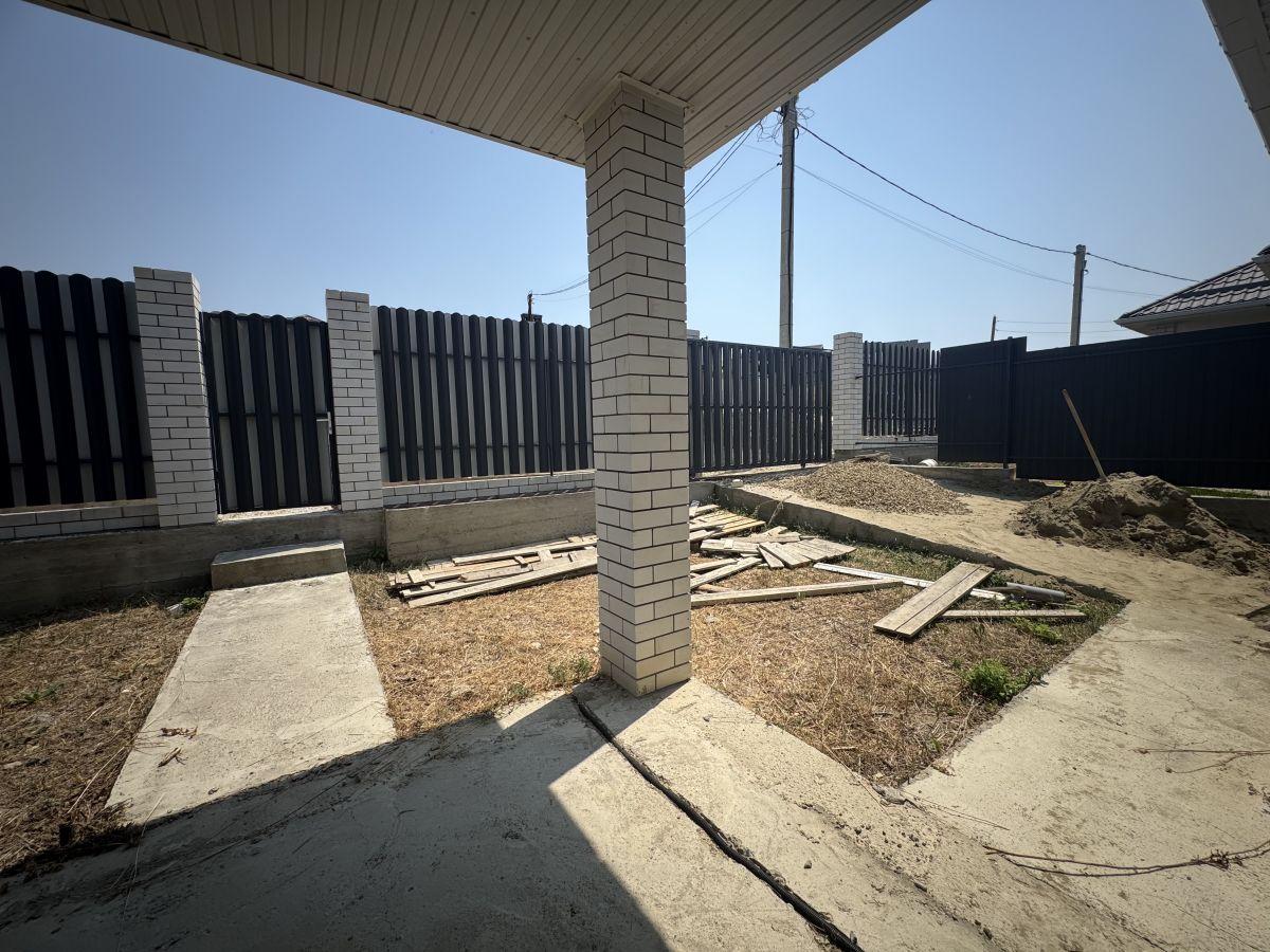 Сам участок 5,6 соток, дом расположен таким образом, что на заднем дворе остается достаточно места для огорода, каких то построек.