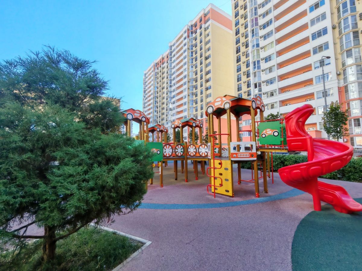 Территория комплекса огорожена и охраняется, что гарантирует безопасность и спокойствие для всех жителей. Здесь много зелени, создающей приятную атмосферу, а также множество детских и спортивных площадок, которые будут идеальными для активного отдыха и семейных прогулок. Неподалёку находится спортивный клуб World Class с бассейном, что станет прекрасным дополнением к вашему образу жизни.
