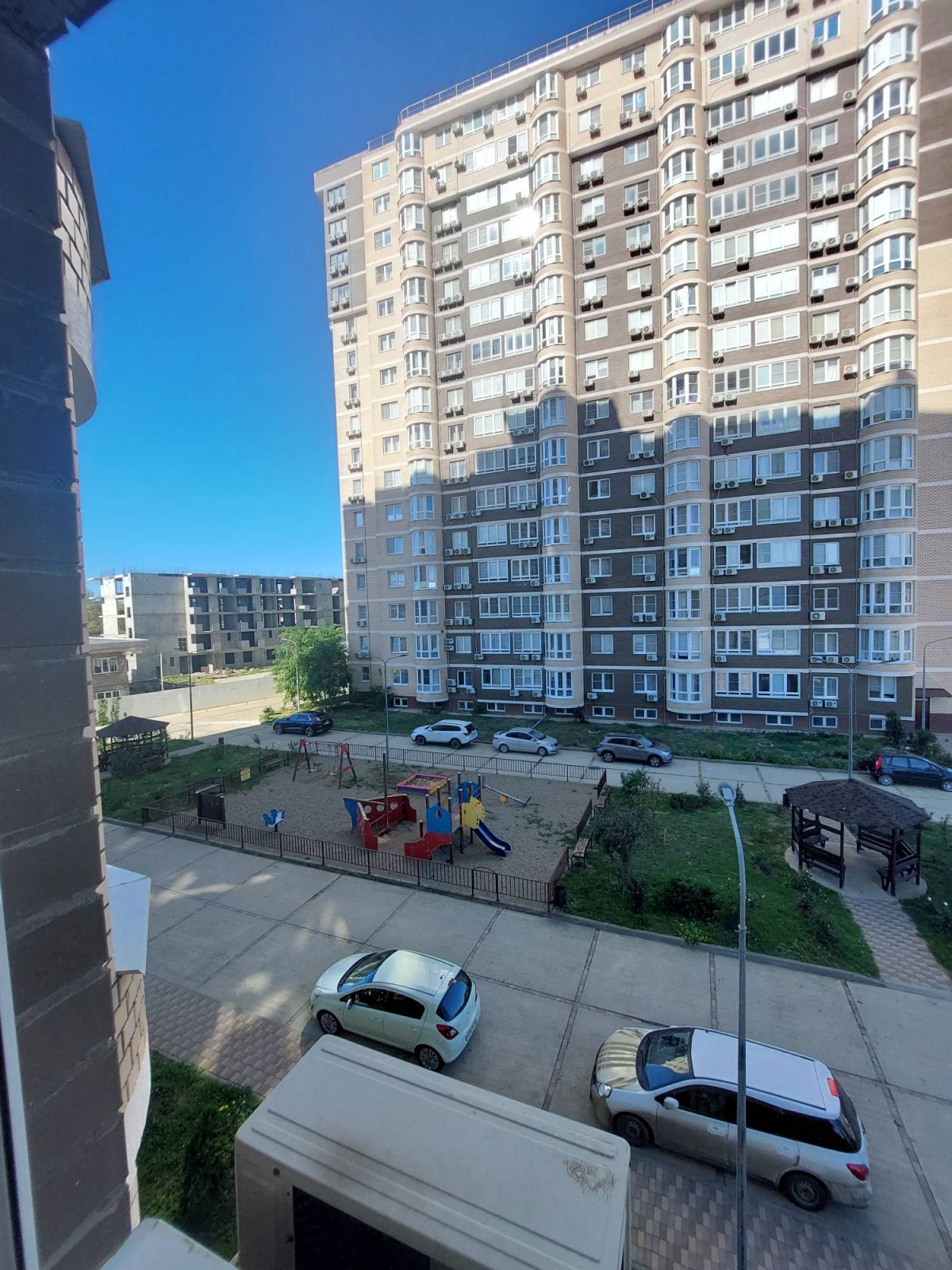 - Облагороженная придомовая территория с морским воздухом, зелеными насаждениями. Есть беседки и детская площадка — идеальное место для семейного отдыха.