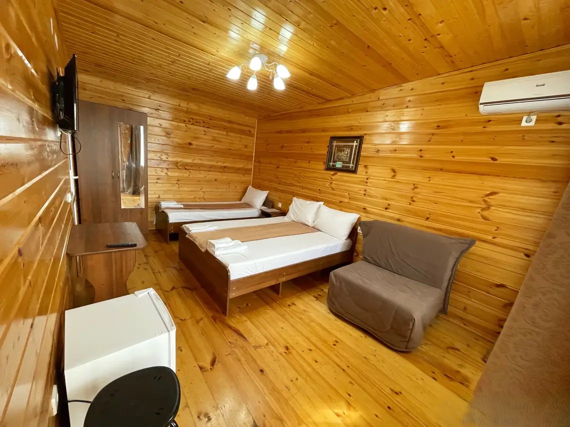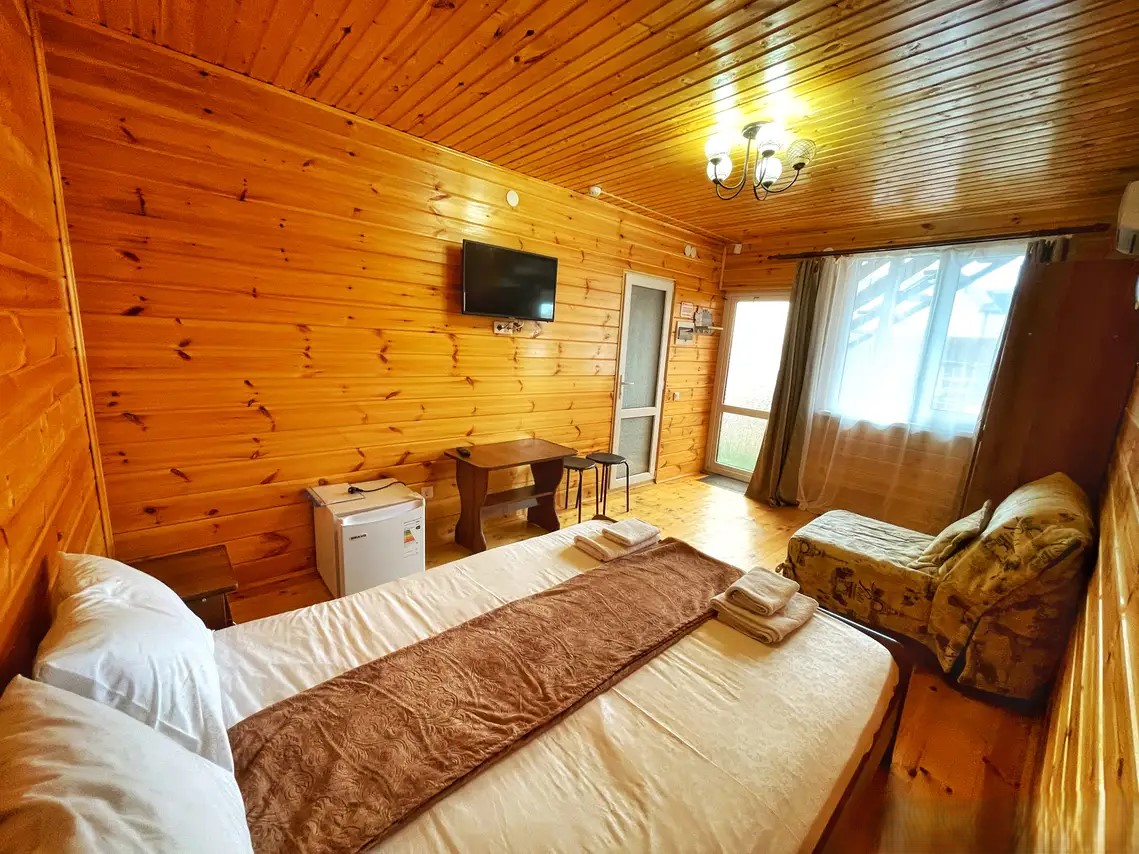 восемь номеров: 3-4-х местный (2-х спальная кровать, 1-но спальная кровать и кресло);