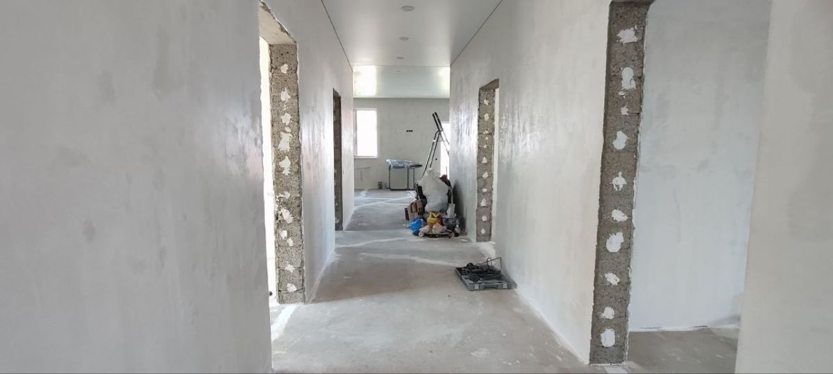 В доме выполнен ремонт на 80% . Отштукатурены стены под покраску, Смонтированы натяжные потолки, теплые полы, установлен газовый котел.
