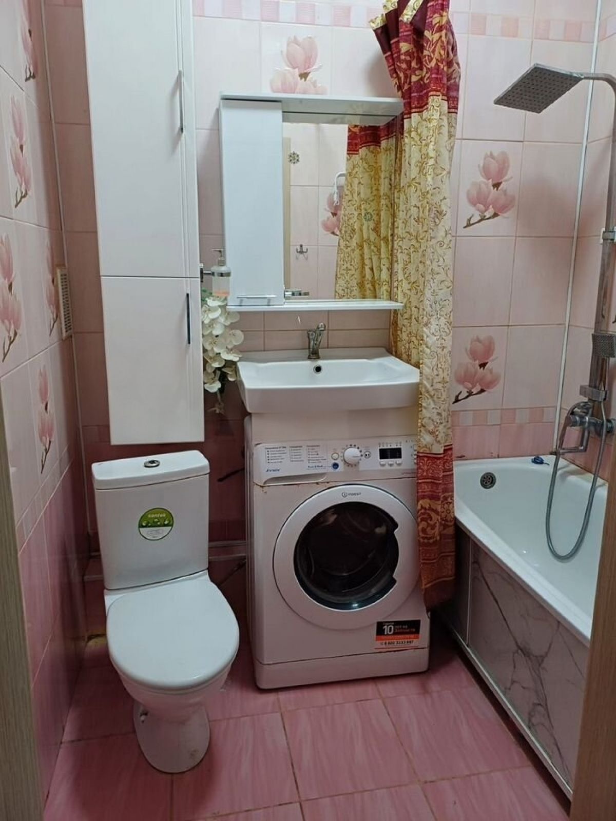 Современный совмещенный санузел оборудован качественной сантехникой и функциональной плиточной облицовкой.