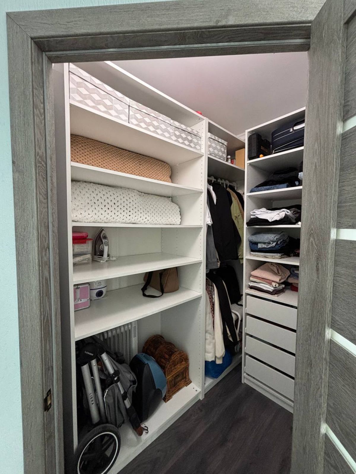 В прихожей есть гостевой санузел, в гостиной панорамное остекление в пол. В спальне выход на балкон , балкон 5м2. Своя гардеробная и собственный совмещенный , санузел.