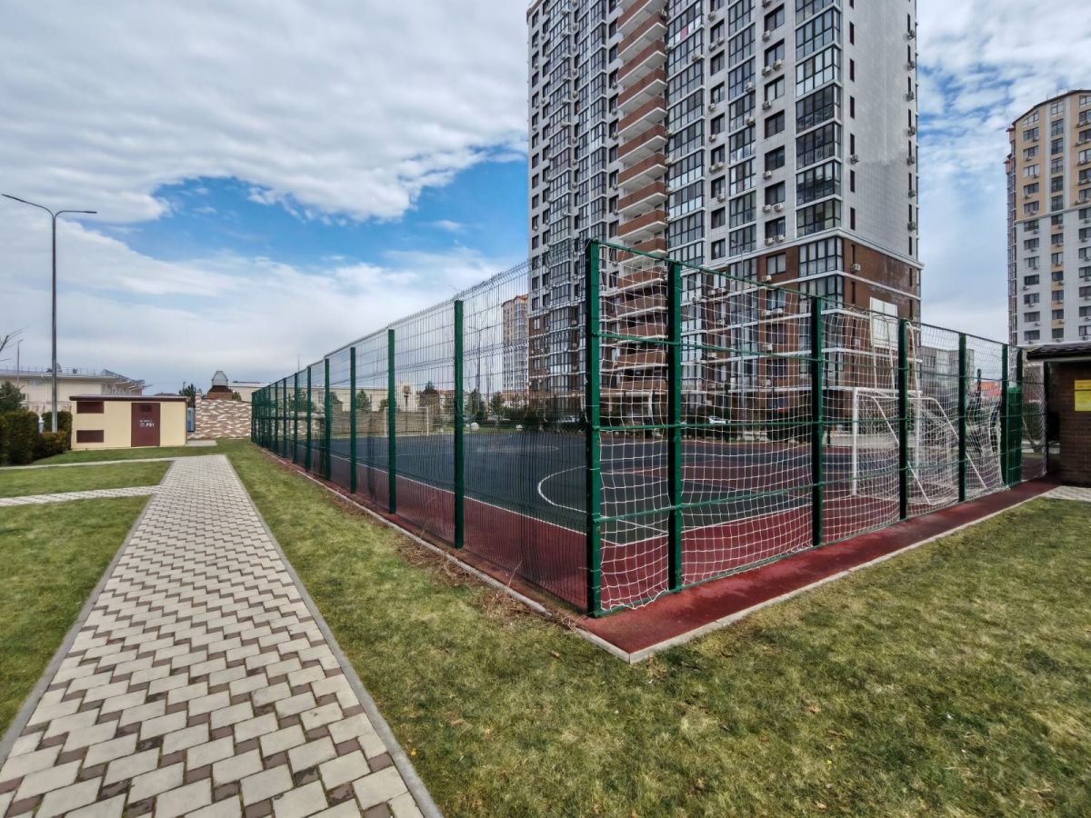Управляющая компания следит за порядком. Газоны оборудованы автоматической системой полива, всегда радуют глаз зеленью.