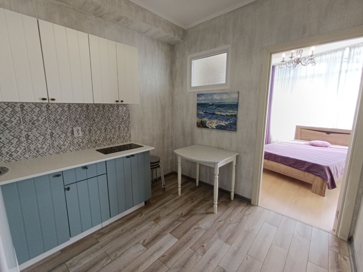 Расположена на четвертом этаже девятиэтажного Апартаментного комплекса, на первой береговой линии в центре Анапы.