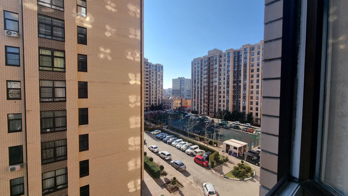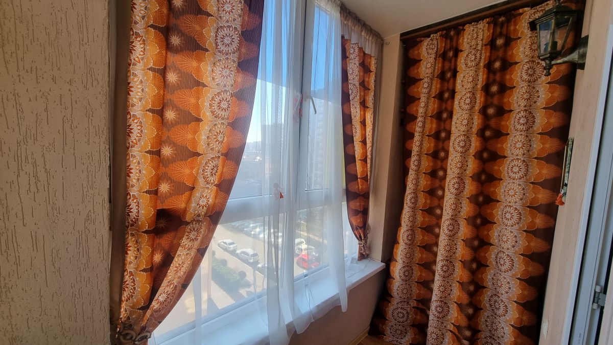 На балконе угловой вид на город и во двор. Справа ниша для хранения вещей. Балкон просторный , можно использовать как дополнительное место отдыха или работы. На батареи установлен теплосчётчик для регулировки тепла.