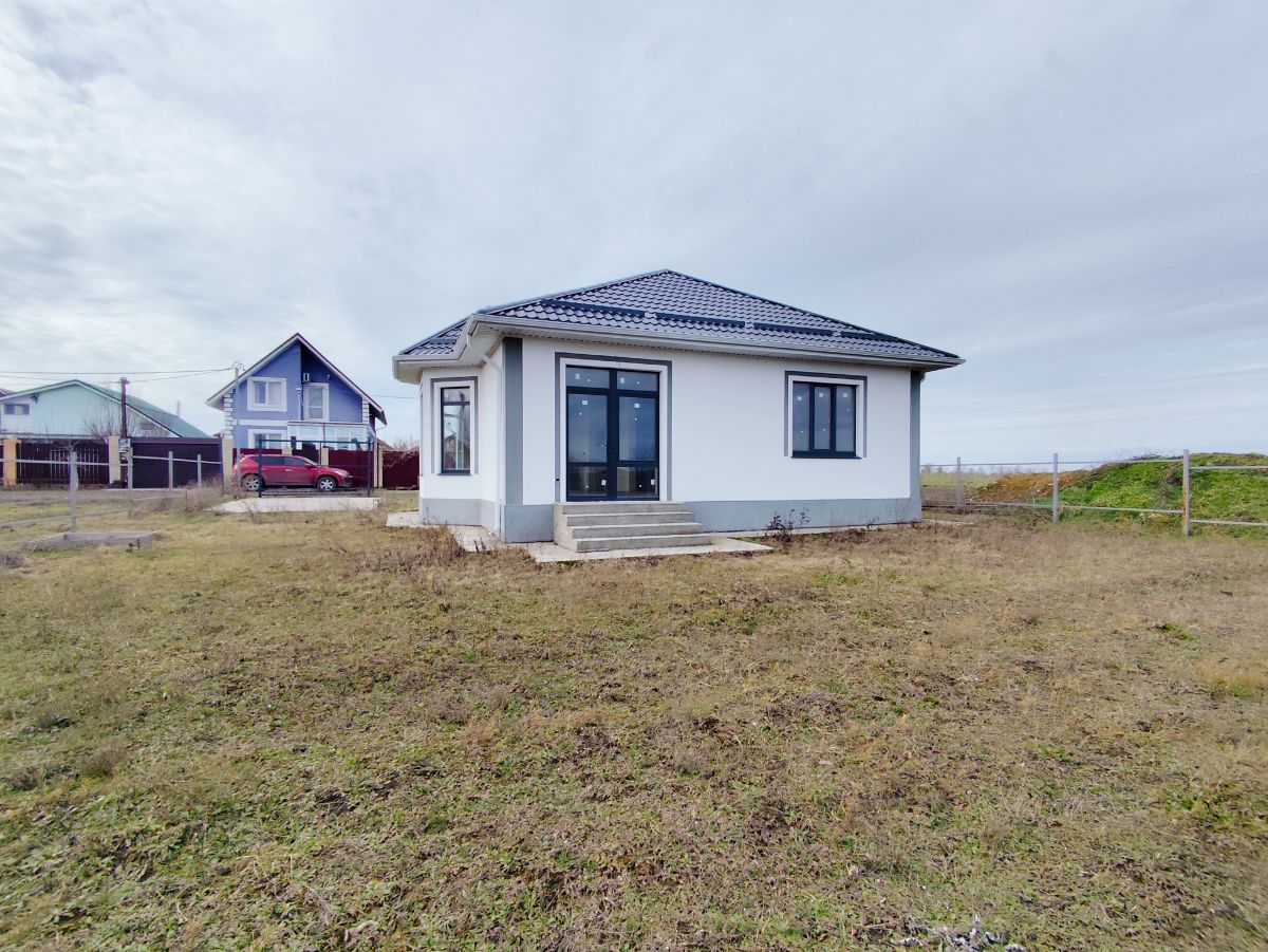 Дом из керамзитового блока, с утеплением 5см пенопласт и облицован камешковой декоративной штукатуркой. Окна энергосберегающие. Крыша металлочерепица. По периметру есть подготовленные для ограждения металлические столбы и по фасаду сваренные откатные ворота и калитка (осталось только установить профиль или штакетник - на ваше усмотрение).
