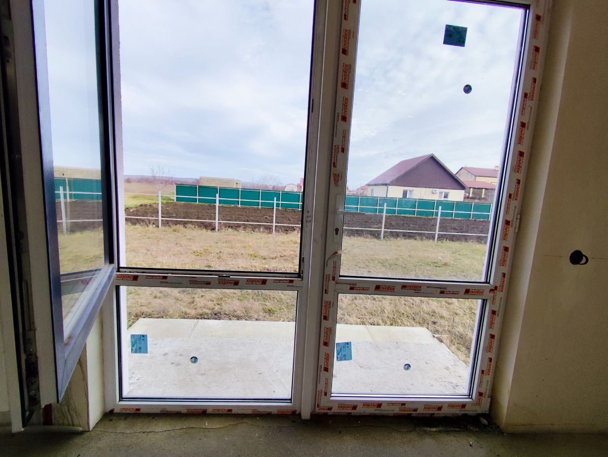 Дом одноэтажный, с планировкой, включающей санузел 6 кв.м., две спальни по 10,8 и 14,7 кв.м. и огромную кухню-гостиную площадью 40,3 кв.м. с выходом на обратную сторону участка. В кухне-гостиной можно отделить еще одну комнату, если в этом есть необходимость.