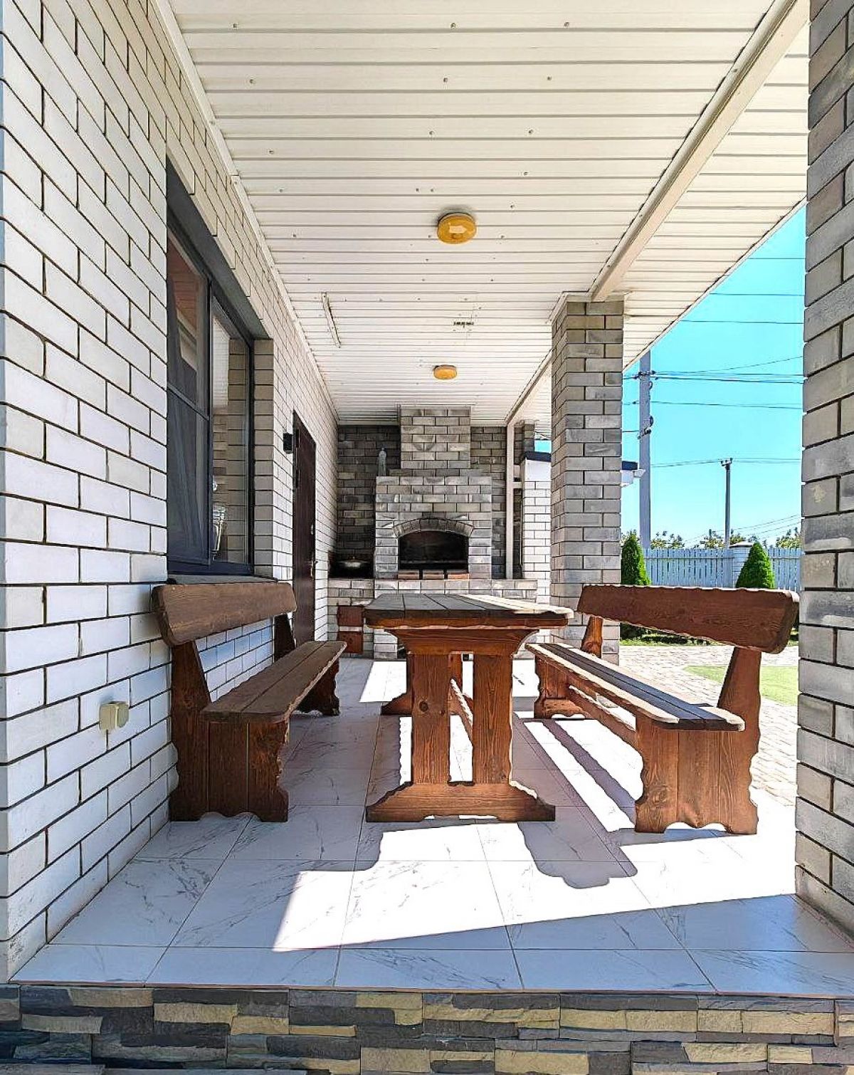 Отдых и развлечения: зона барбекю рядом с баней идеальна для встреч с друзьями и семейных праздников.