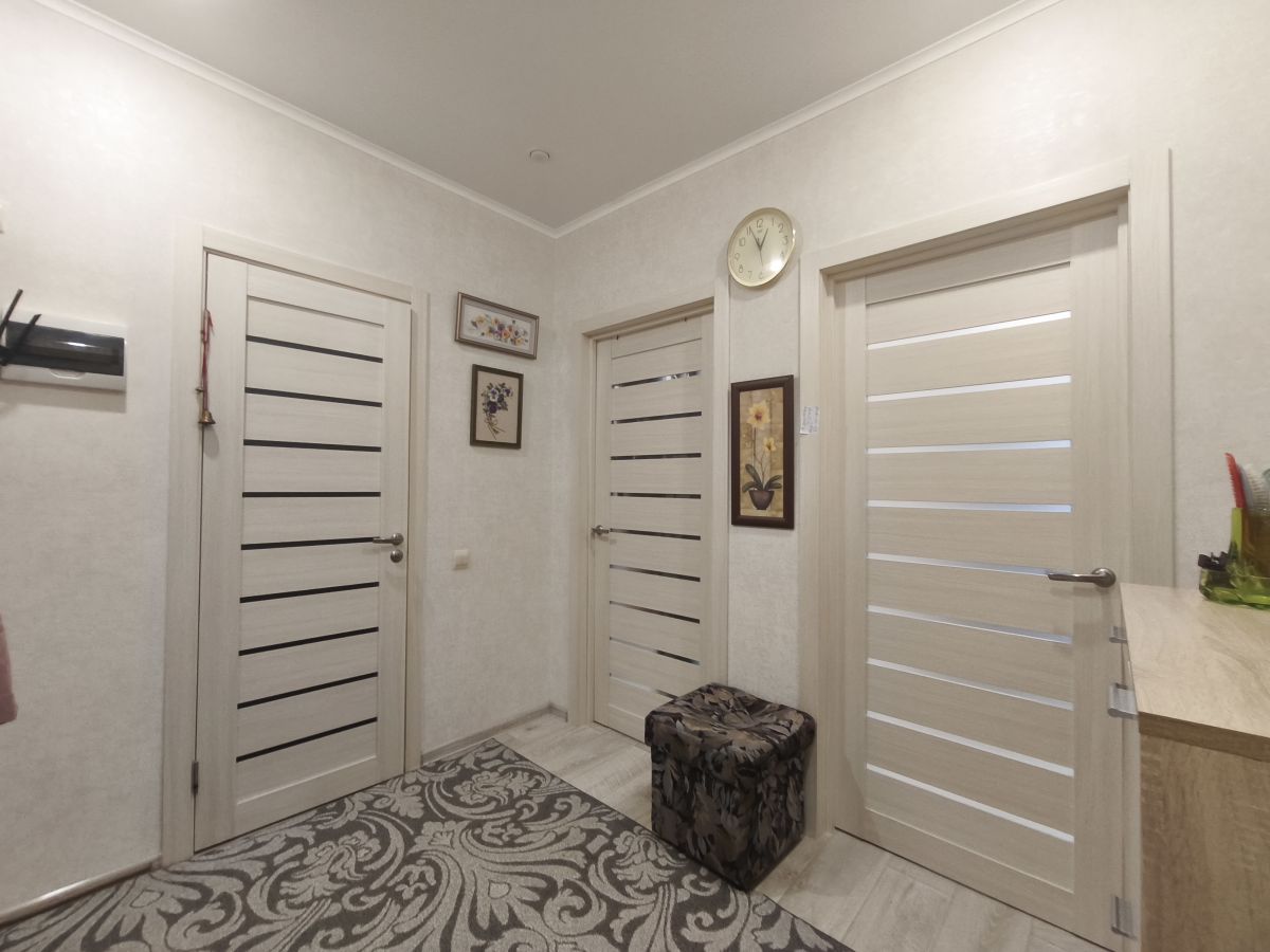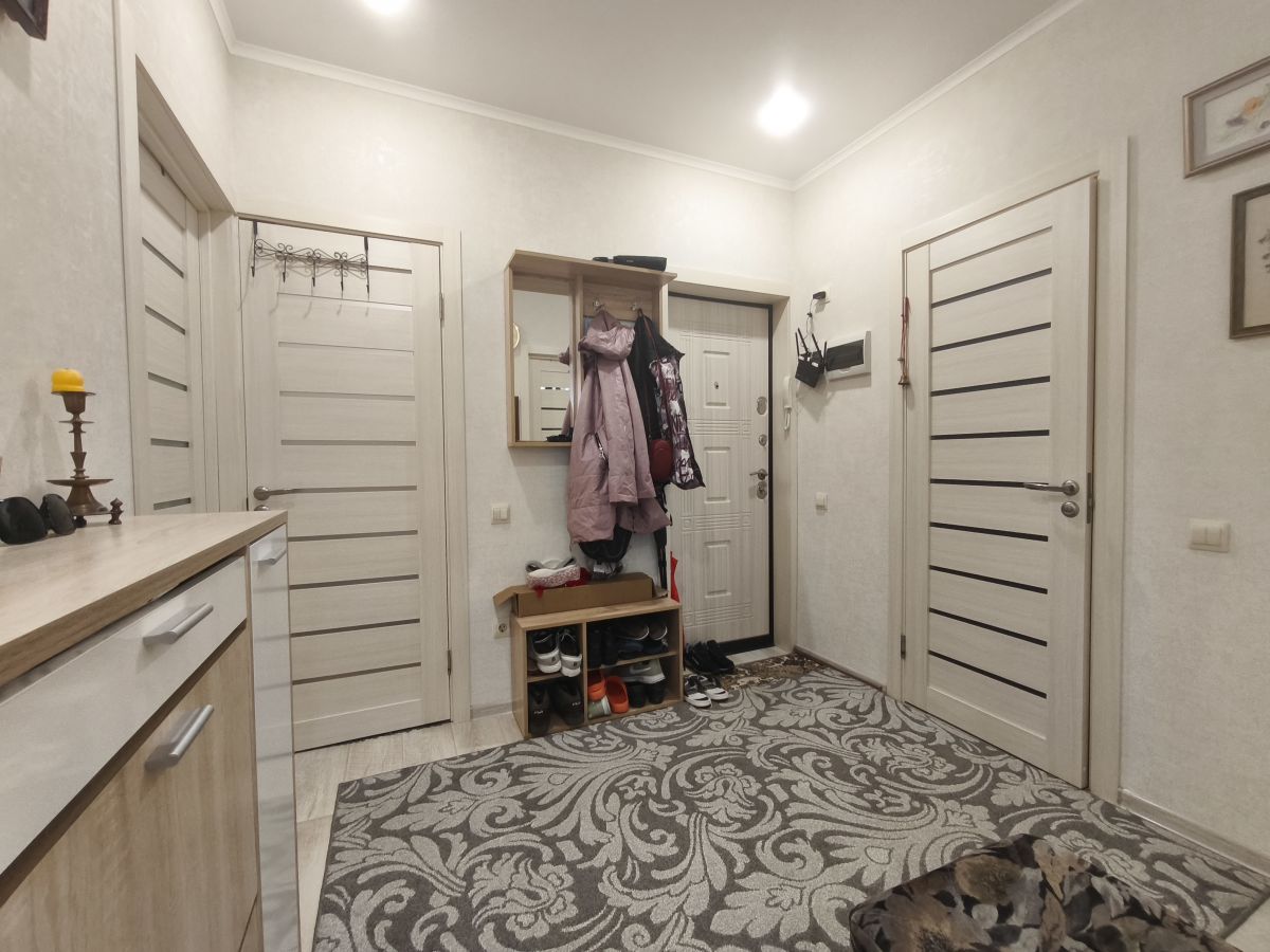 В квартире выполнен ремонт из современных материалов в светлых тонах.