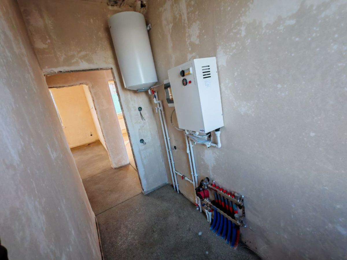 В доме смонтирован теплый пол в кухне-гостинной, прихожей, сан узле, в комнатах батареи.