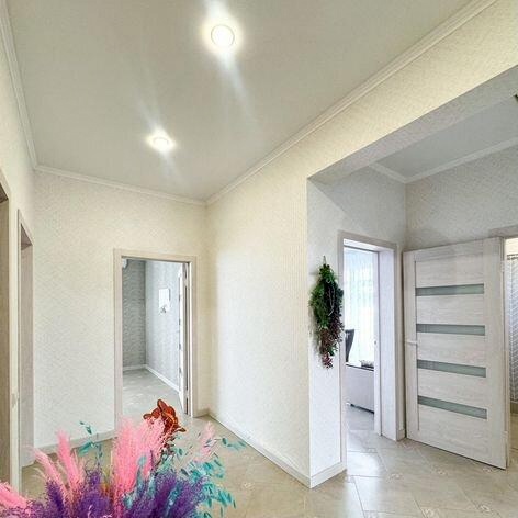 Продается отличный светлый дом с новым ремонтом, выполненным в светлых тонах качественными материалами. Теплые полы во всем доме с возможностью регулирования и отключения в каждой комнате отдельно. Система приточно-вытяжной вентиляции с климат-контролем. Сад с плодовыми деревьями. Теплица. Напротив поселка в рамках проекта комплексного развития территорий началось строительство всей инфраструктуры с детским садом, школой, спортивными и культурными объектами. Всё это позволит в пешей доступности комфортно жить на море. До Анапы 10км! До Новороссийска 54 км! До Краснодара 156 км! До Сочи 350 км! До Крымского моста 89 км! Вокруг отличные асфальтированные новые дороги! В нескольких километрах находятся лучшие песчаные пляжи Анапского района на Бугазской косе. Там согласован проект туристического кластера Новая Анапа (Краснодарский Дубай). Проект на контроле президента, уже проведен конкурс концепции проекта и в 2025 года на территории более 90 Га начнут строить отели, парки, арт и культурные объекты. Всё это уже сделало небольшой хутор Нижняя Гостагайка инвестиционно привлекательным, а земля быстро растет в цене. Дом полностью готов -заезжай и живи!