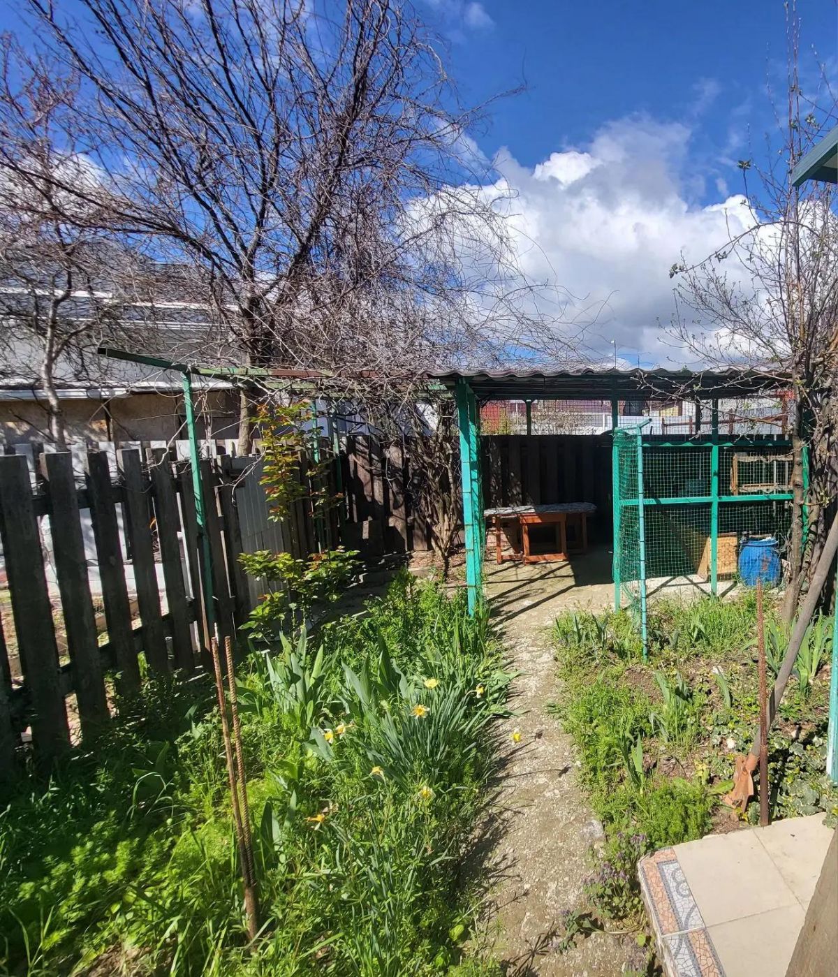 Участок 1,5 сотки на котором есть зона барбекю, плодовые и хвойные деревья, летний душ т сарай для инструмента.